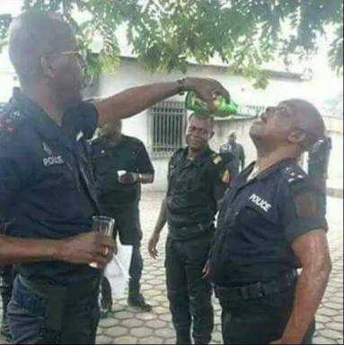 majority of Nigerian police loves taking alcohol, as a matter of fact, they see alcohol as a way of life. In Lagos for example, there is no police station that doesn't have a place that they don't sell ogogoro (ethanol) around, either inside, beside or opposite the police station. There was a time when the Lagos state commissioner of police placed a ban on sales of alcohol in or around police station across the state, but we all know Nigeria nah.