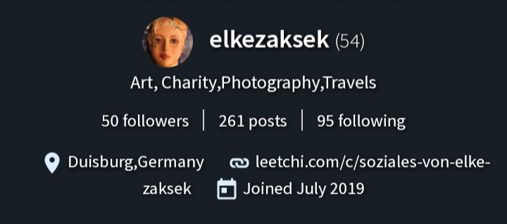 The steemian @elkezaksek joined the community in july 2019 and is living in Duisburg in Germany. She is an enthusiastic photographer that loves art and to travel. What I find really amazing that she and her husband are running a charity project in Uganda.