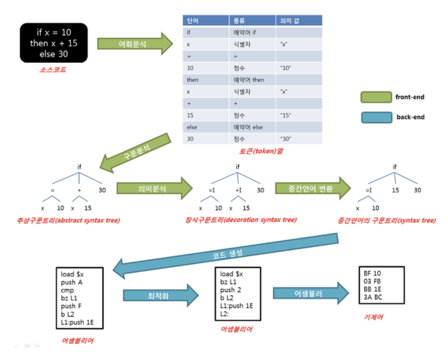 고급언어 > 컴파일러 > 어셈블리어 or 기계어