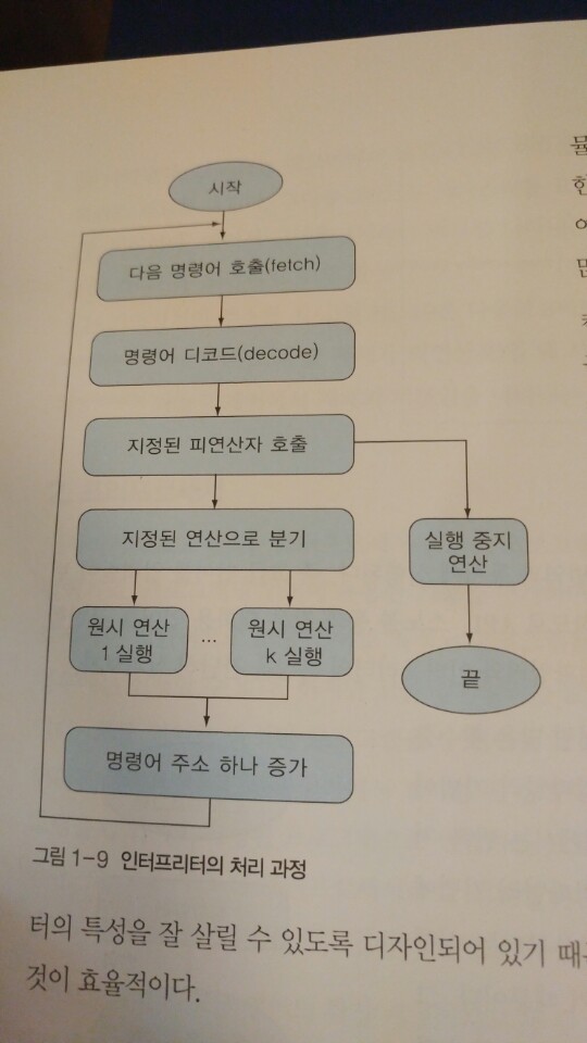 인터프리터는 한줄 단위로 번역과 실행하여 반복문일때 실행시간이 많이 늘어남