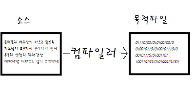 원시 코드에서 목적 코드로 옮기는 과정을 컴파일(번역)이라고 한다.