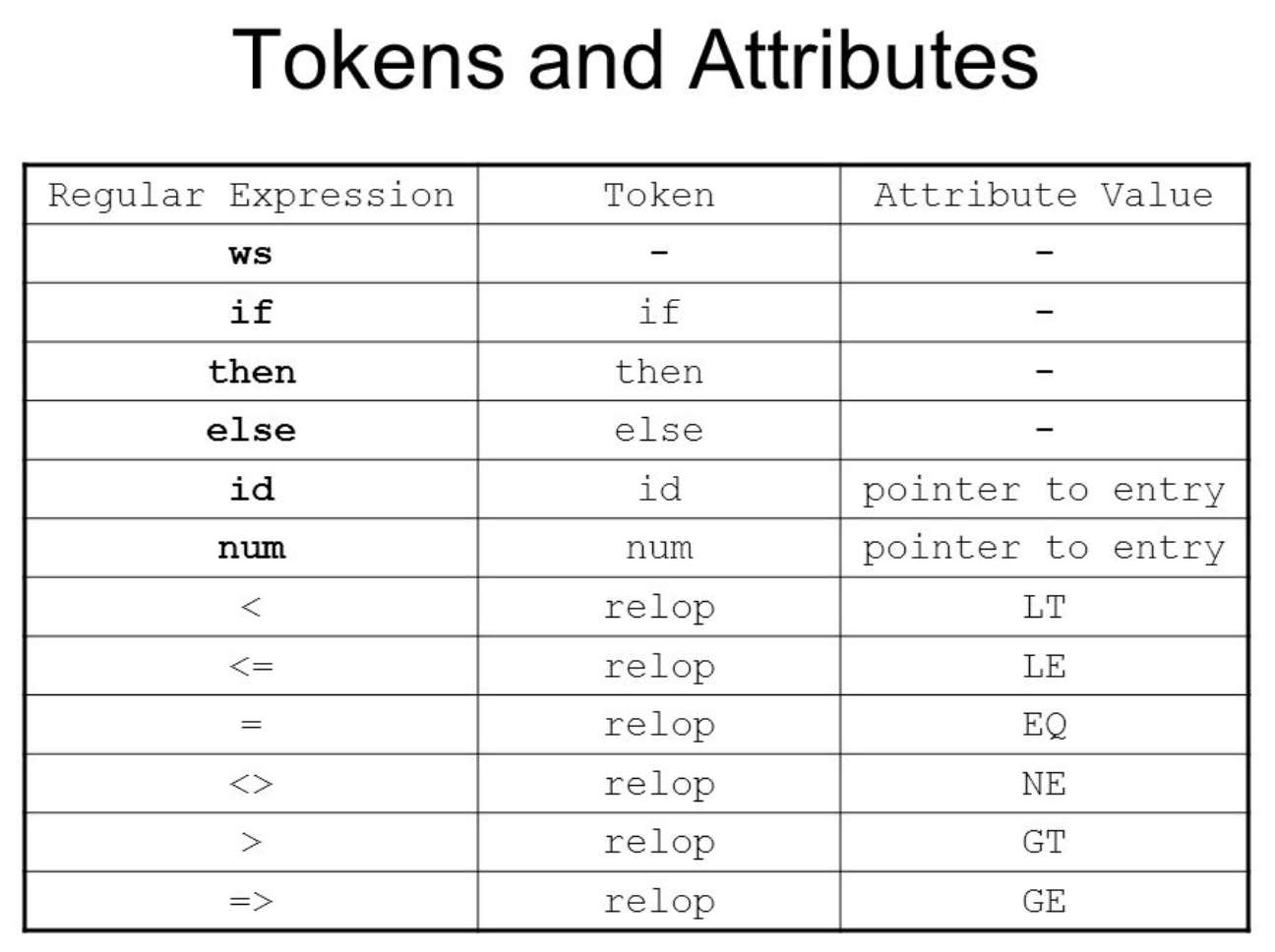요약하면 예약어, 연산자, 상수, 프로그래머가 정의한 식별자, 괄호 쉼표 세미클론등을 토큰테이블에 올려둡니다.