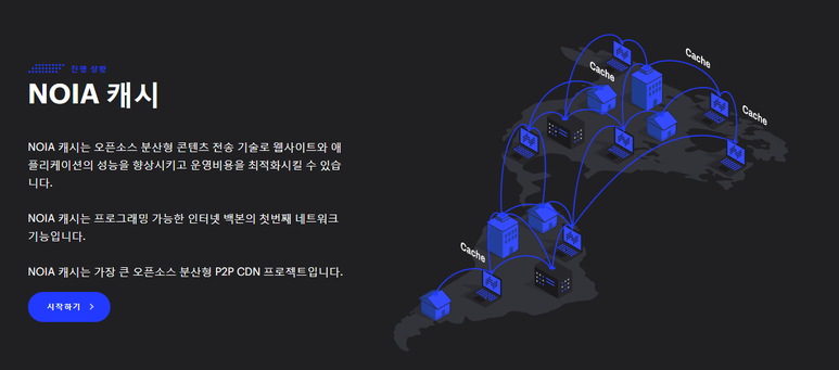 NOIA 캐시는 프로그래밍 가능한 인터넷 백본을 사용하는 첫번째 네트워크 기능으로 웹사이트의 로딩 성능을 높이고 비용을 최적화하는 분산형 컨텐츠 전송 기술입니다. 전세계 가정용 컴퓨터, 라우터, 데이터 센터에서 남은 여분의 대역폭을 활용하여 광범위한 분산형 캐싱 레이어를 구축합니다. NOIA 캐시는 하와이, 남아프리카공화국, 라오스, 마다가스카르 등 전세계 150개 이상의 웹사이트에서 사용하고 있으며 4800개 이상의 노드를 보유하고 있습니다.