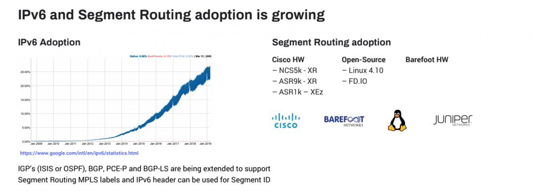 Cependant, pour que cela se produise, il est nécessaire de connaître les routeurs disponibles sur un Internet public, ce qui n’est pas disponible à l’heure actuelle. Mais grâce à un registre distribué (blockchain), cela peut être réalisé tout en maintenant toutes les informations décentralisées grâce à l’utilisation de protocoles consensuels. Cette combinaison d’architecture IPv6 avec le routage par segment (SR) a été désignée sous le nom de SRv6.
