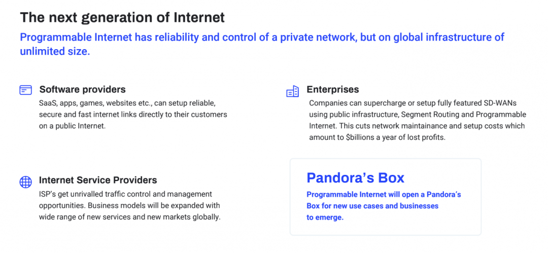 Avec ses partenaires, NOIA construit le premier réseau SRv6. Le lancement d’un marché de fonctions réseau avec un grand livre distribué et un échange Internet décentralisé signifie que les caractéristiques d’un SDN privé et l’amélioration des performances peuvent désormais être largement accessibles à tous à un coût raisonnable. Ce que NOIA est en train de faire est une première — développer un Internet véritablement programmable.