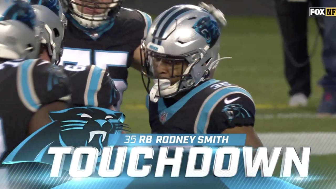 It was rookie Rodney Smith who got the TD, the first of his professional career. I think it would be a bit unfair to say that this 2 yard walk in was really something spectacular because it wasn't. Rodney is much smaller than the offensive line and he kinda just walked under the arms of the much bigger folks in front of him. I'm not trying to take away from this accomplishment but it was kind of funny to see. He did manage to average 4 yard per carry on 10 carries in the rest of the game.