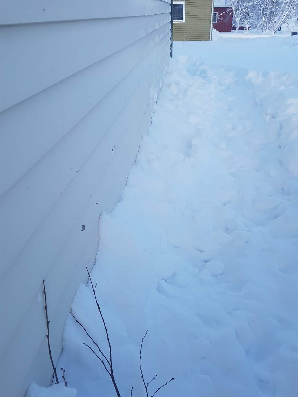 Keeping in mind that I already had problems with freezing basement when the temperatures were in the negative 20s, the solution had to be packing extra snow all around the foundation of my house, as can be seen in the last photo.