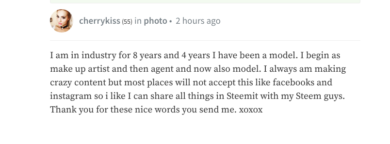 Hi Cherry, if any of your friends/colleagues in the porn business are interested in a Steem account, let me know and I'll get one created asap.