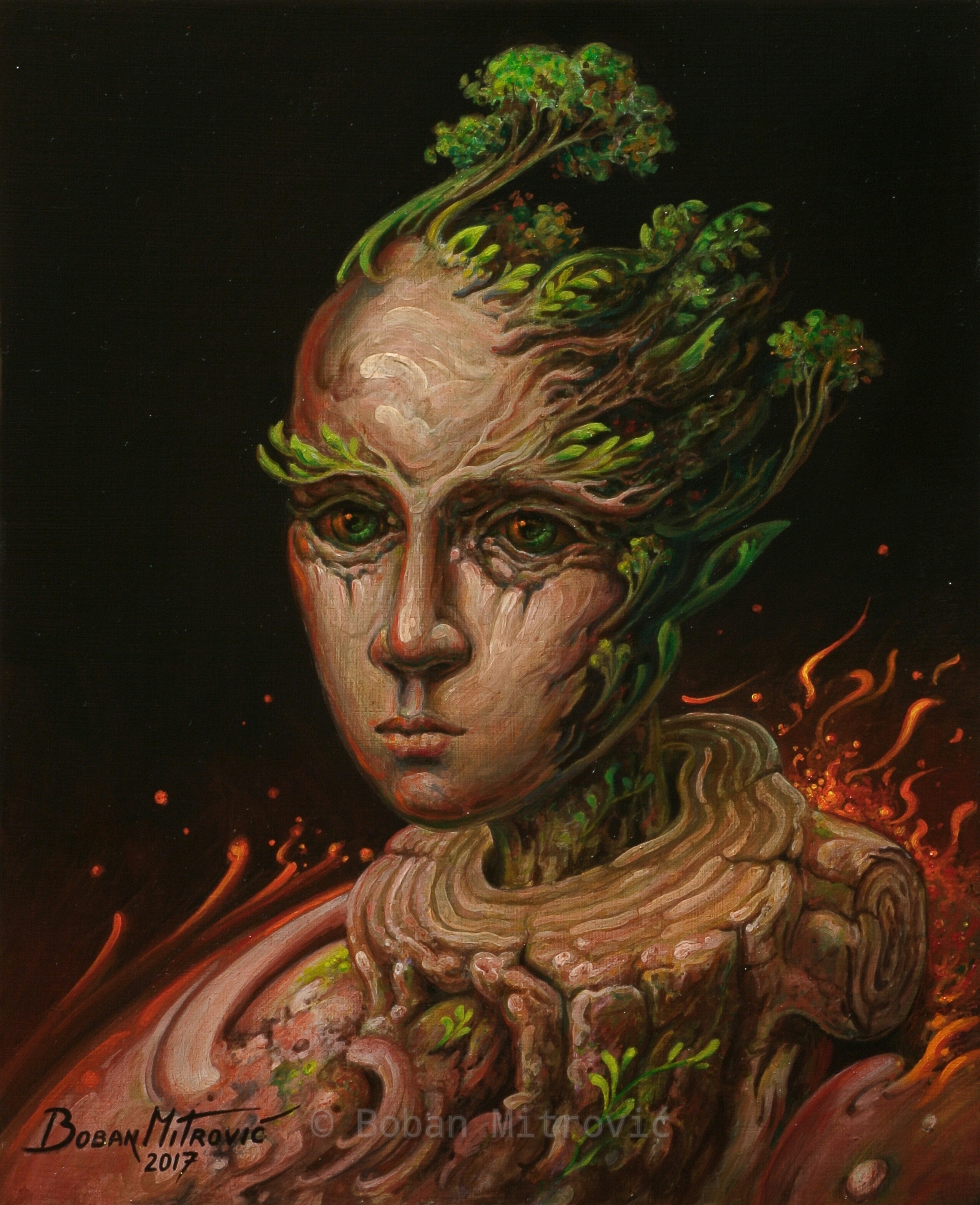 Thank you @ryivhnn ! He has the body of a young man, but it is not shown here. He revives the cut tree and protects it from the fire that is trying to swallow it..The tree felled symbolically represents the Old Slavic faith, and the fire of the Christian church.