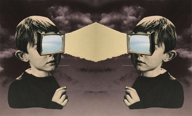 Digital collage. Through the use of photoshop and other programs we can digitally cut photos and create with ease complicated compositions. Example