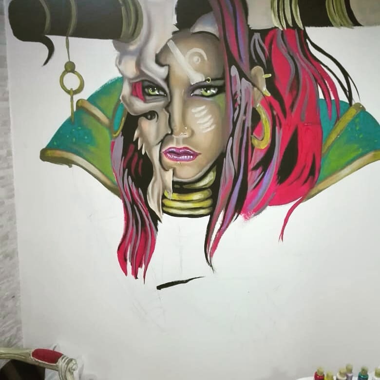 Buen día amigos hoy les compartiré este trabajo que realice hace 8 meces aproximadamente no lo avía mostrado por que quería darme a conocer un poco antes con mis dibujos, ya que tengo también trabajos realizados en murales este trabajo me tomo unas 70 horas y me disculpan si fue bastante lento pero no acostumbro mucho trabajar en este modo pues al tener un espacio tan grande me cuesta un poco realizar buenas proporciones tomando en cuenta que lo pinte prácticamente 2 veces por que no me gusto el primer tono de color que le di al cabello, cabe destacar que los materiales usados para este trabajo fueron : pintura en acrílico , marcador , pinceles de diferentes tamaños, agua borrador, lapis y un poco de pintura en aceite después de una semana de trabajo termine realizando esta diosa azteca para una vecina ya que le gusto como avía echo antes otro mural en mi casa sin mas que aportar les dejo las imágenes