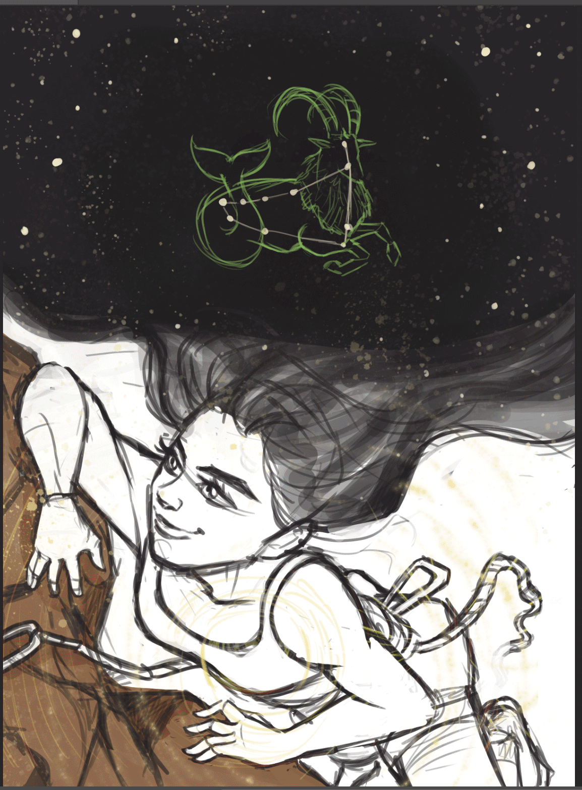 Capricorn. Zodiac illustration (Step by step).