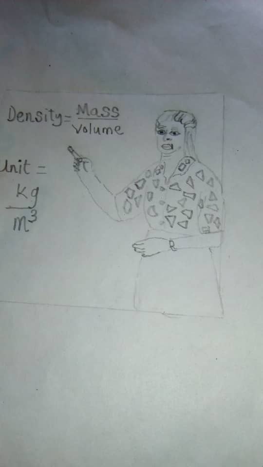 I can recall my best topic she taught me that I will never forget in my life- Density=Mass/volume; and its Unit=kg/m3.