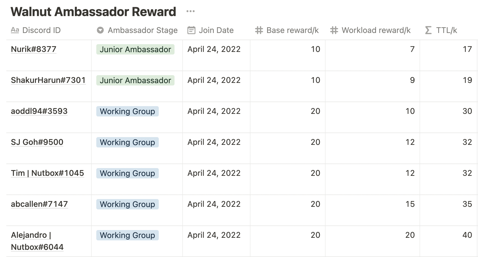 Nutbox Team made the following adjustments for ambassadors based on their performance during this period: