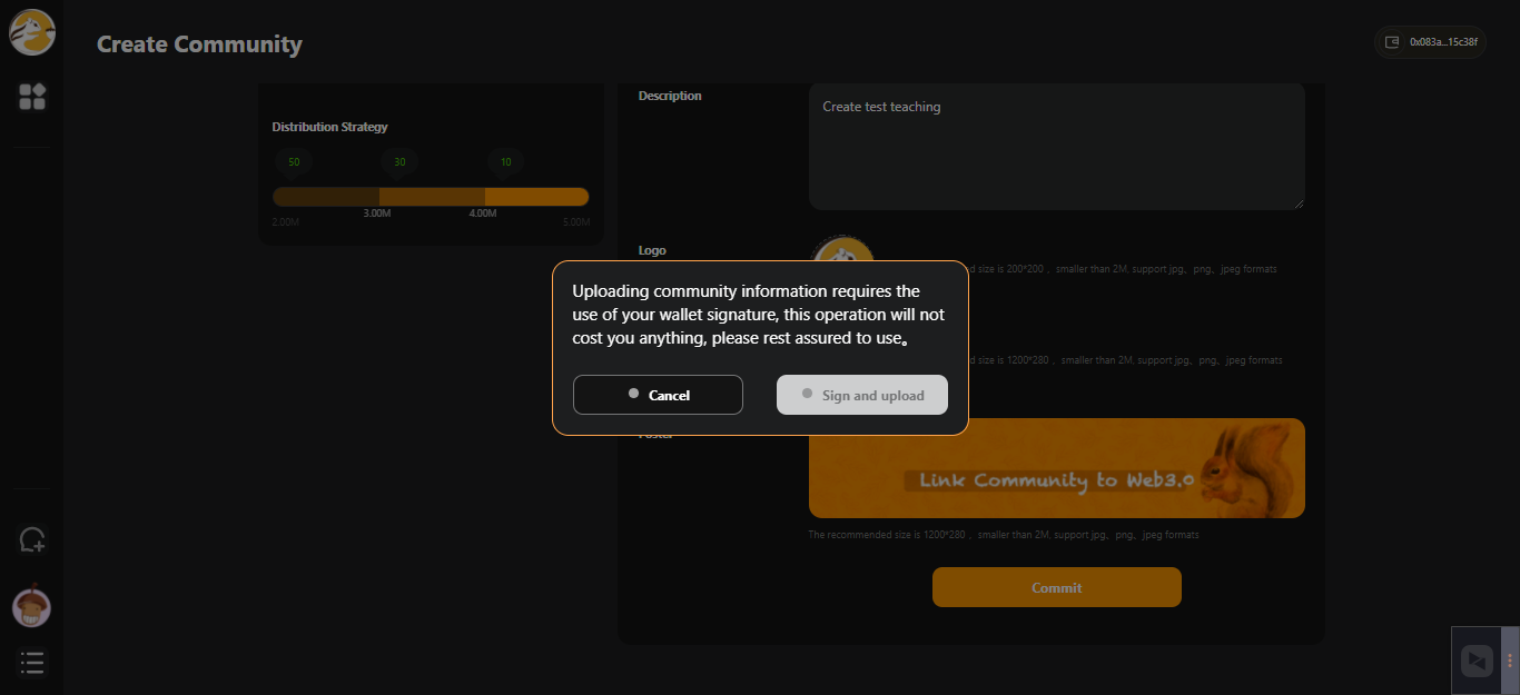 Fill in the community name, website, and description, upload the community’s logo, token’s logo and community’s cover image, then click「Commit」.