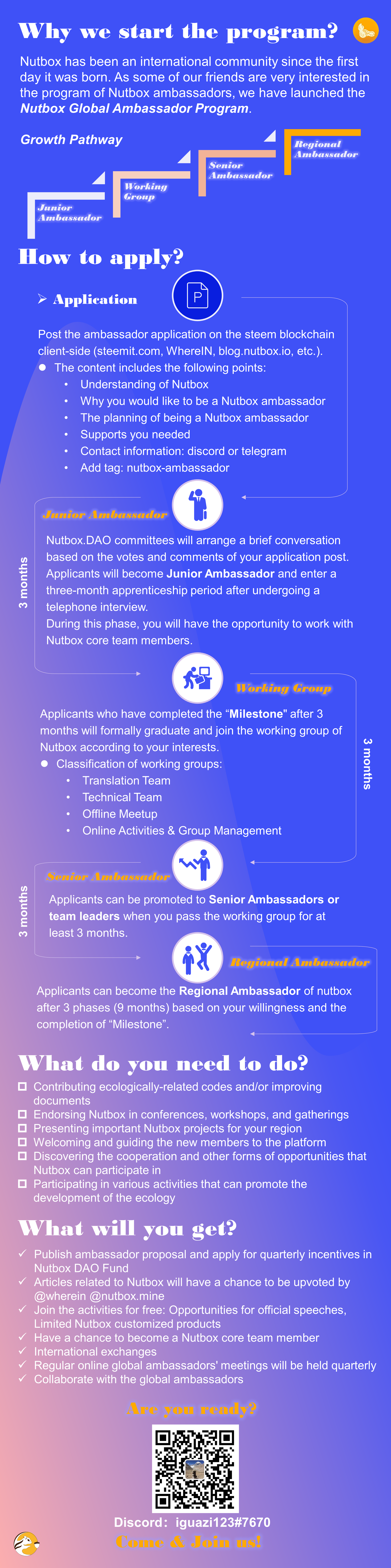 Nutbox has been an international community since the first day it was born. As some of our friends are very interested in the program of Nutbox ambassadors, we have launched the Nutbox Global Ambassador Program.