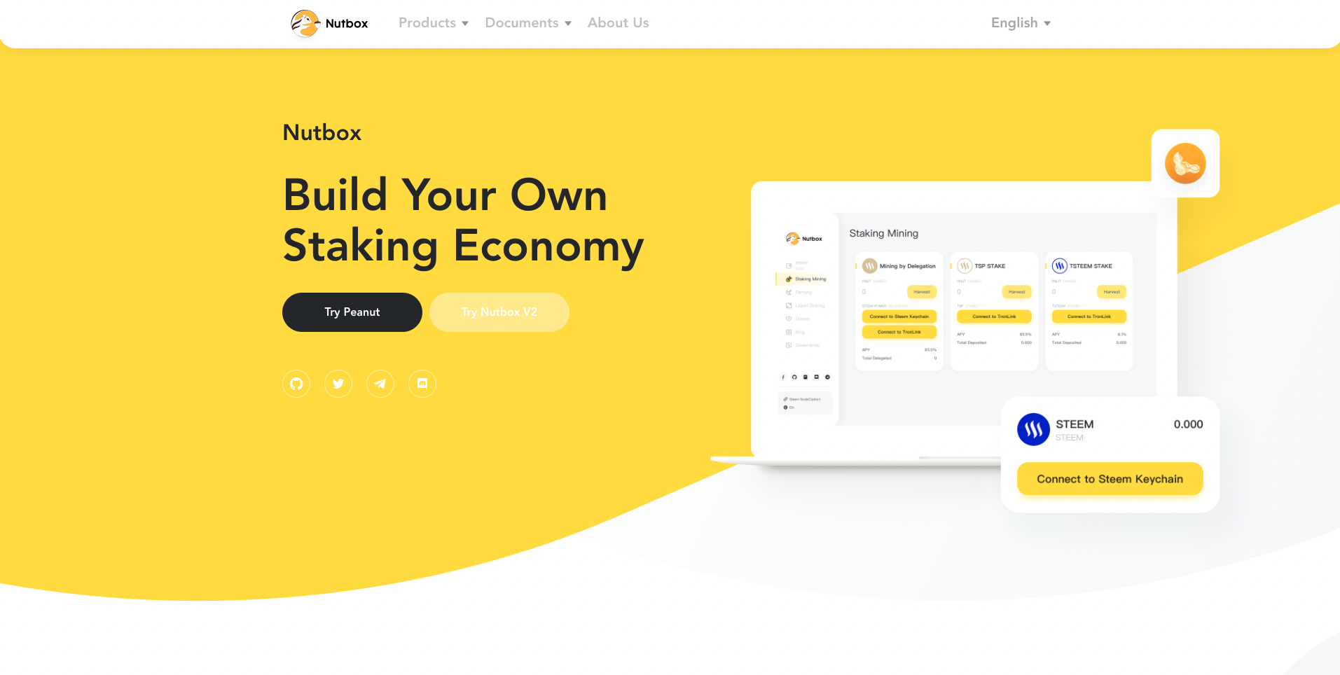 Before the Nutbox v2 be displayed, we have sorted out the relation between peanut and Nutbox v2. Now we can enter into the official website and click "Try Peanut" on the homepage to join the SP delegation service provided by Peanut. We can also find the Peanut service through the web address: https://peanut.nutbox.io/ .