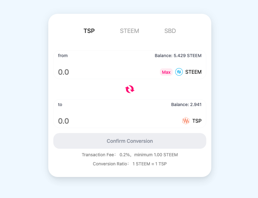 TSP holders can deposit it into the TSP mining contract to receive PNUT and enjoy the staking income of SP assets. TSP can also be traded with TRX and USDT on JustSwap at any time. Of course, TSP can be converted to STEEM through Nutbox, where the process is analogous to the conversion of SP to STEEM.
