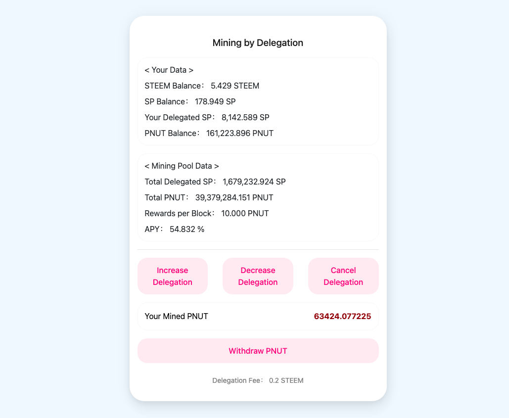 Such business model is too traditional. Nutbox has made a little innovation and tokenized the STEEM interest received by users. The user delegates SP to Nutbox and receives PNUT every moment, and Nutbox will buy back PNUT completely with the original STEEM interest. PNUT is a utility token of Nutbox, and Nutbox is completely owned by PNUT. PNUT allows SP holders to change from customers of the bank to the owners of the bank. Simply put, the holders of PNUT run the Nutbox bank together.