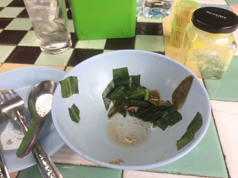 The herbs left in the bowl are cilantro, or (Paak Chee Farrang in Thai) a kind of coriander. I really like the flavour of the coriander and the other herbs in the soup, but I prefer not to put plant fibre into my body, not saying its bad, I just personally operate better without it. (my pooh is soft as clay and I only need to go every 3 days or so since I eat only meat and fat. I love being this light and having zero gut inflammation).