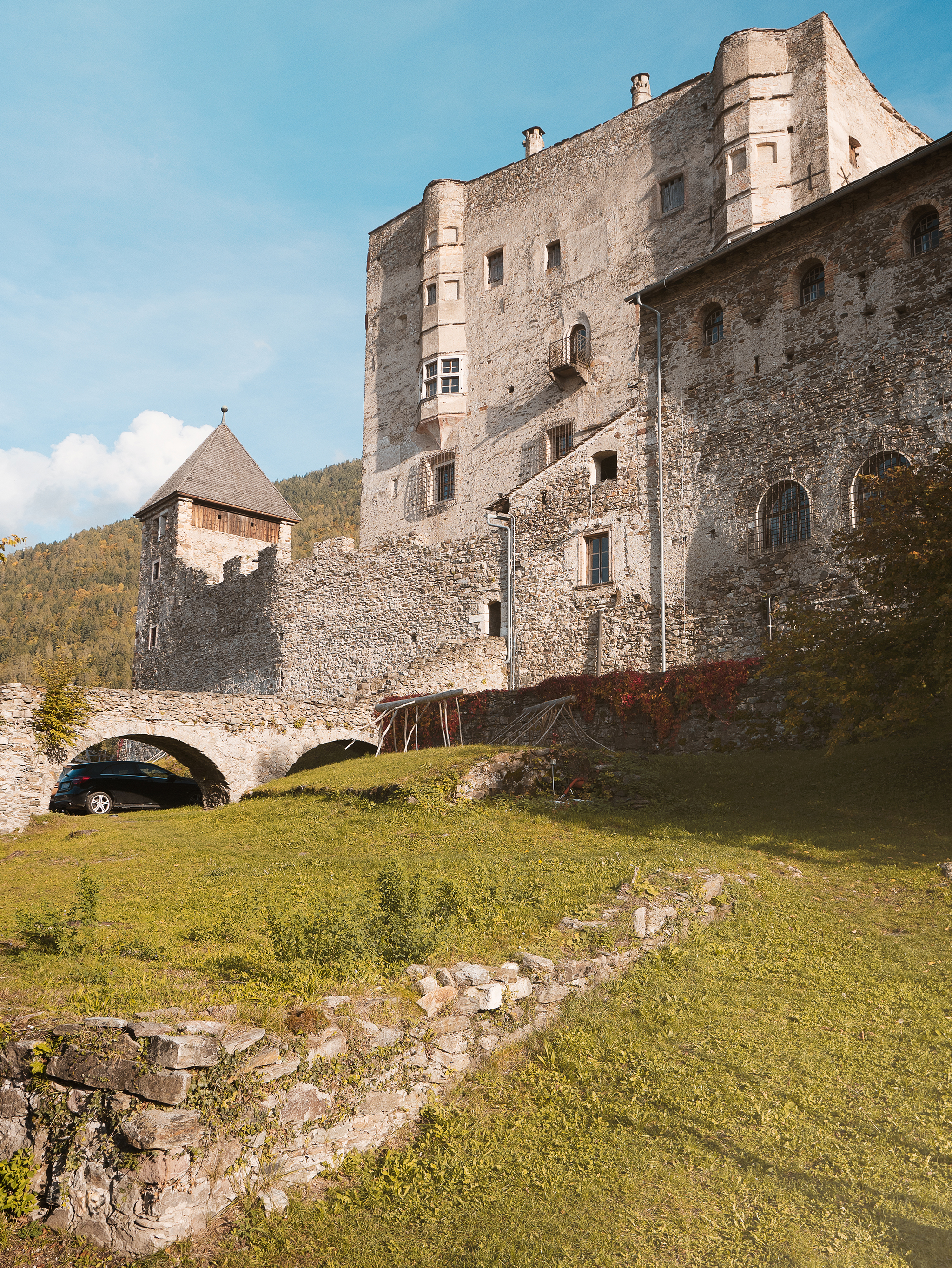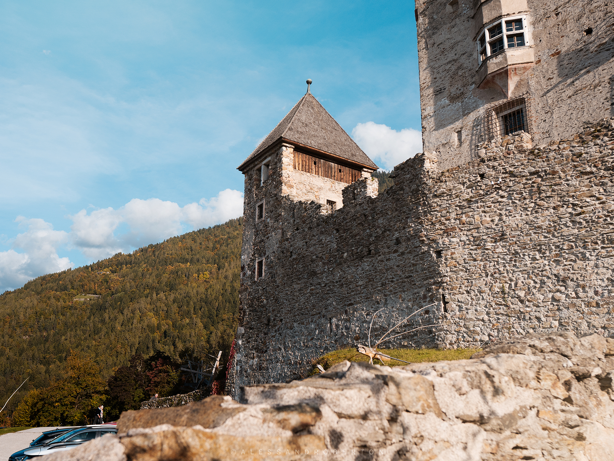 Several points of the castle were affected by the modern works of a local artist who wanted to represent in his own way the devastating effects of the Vaia storm that also affected those areas ... I admit that I did not like them because they disfigured the architecture of the castle and the landscape...