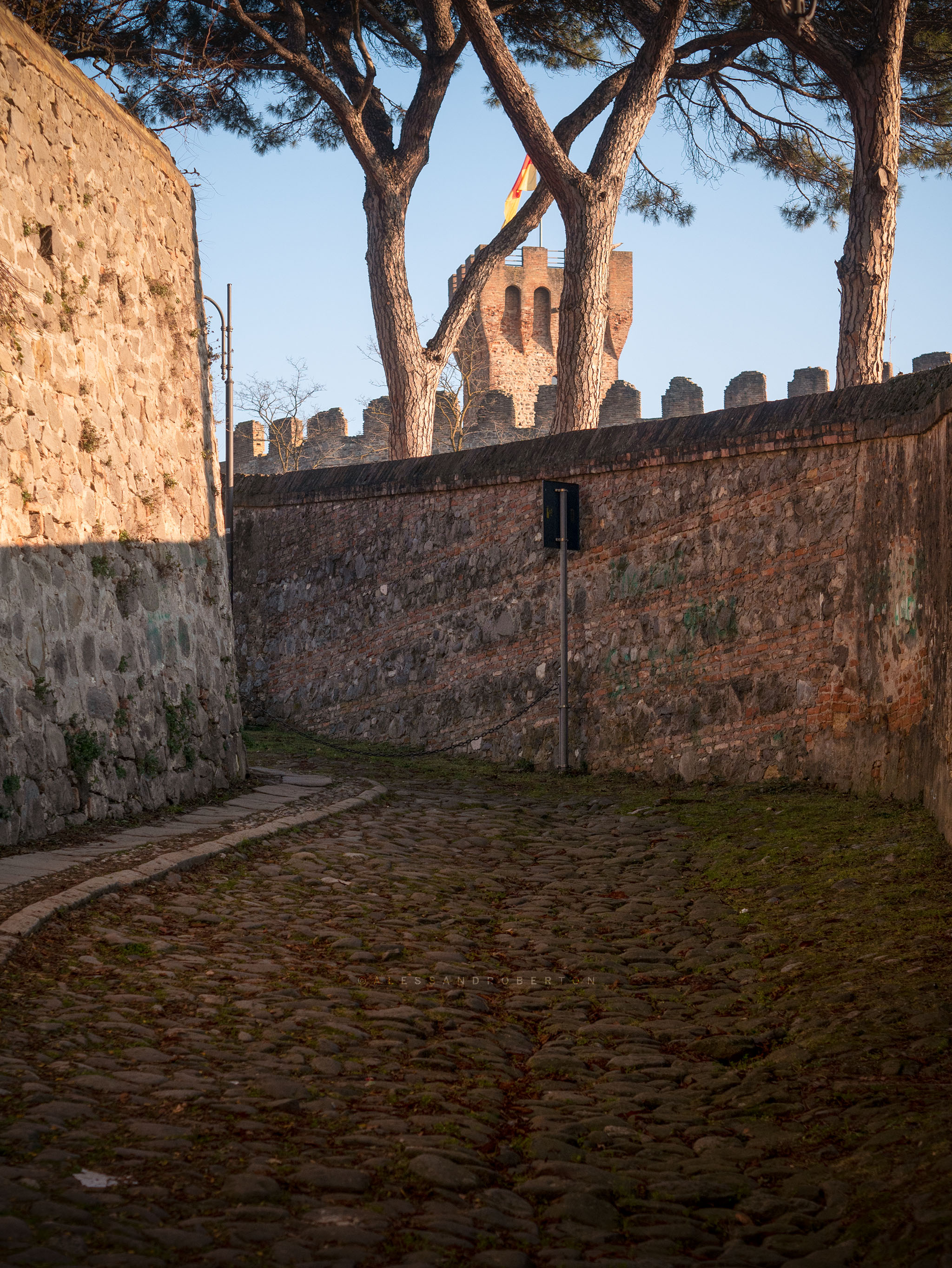 Molto d'effetto la vista dall'alto, in asse con l'accesso principale alle mura del castello.