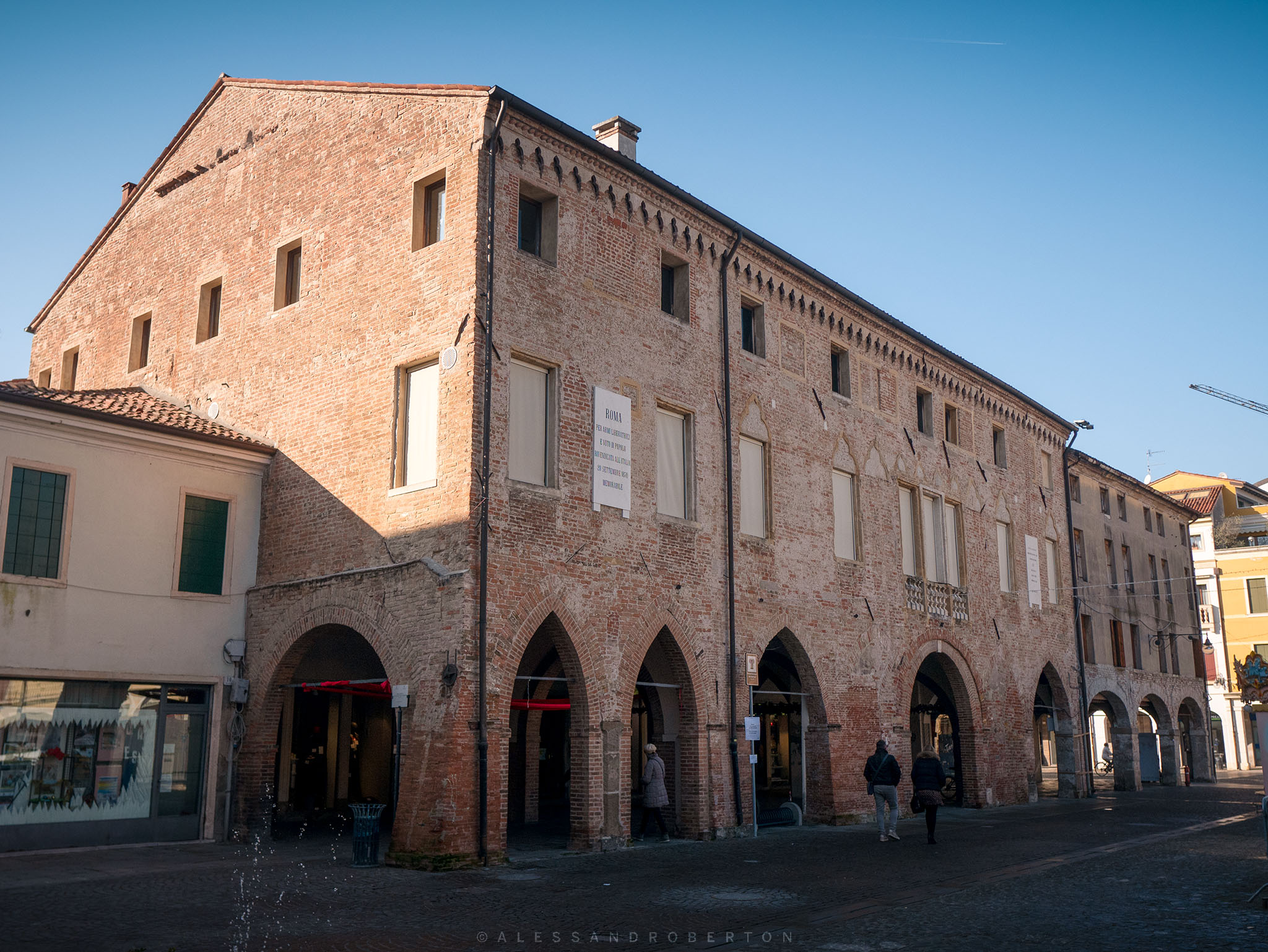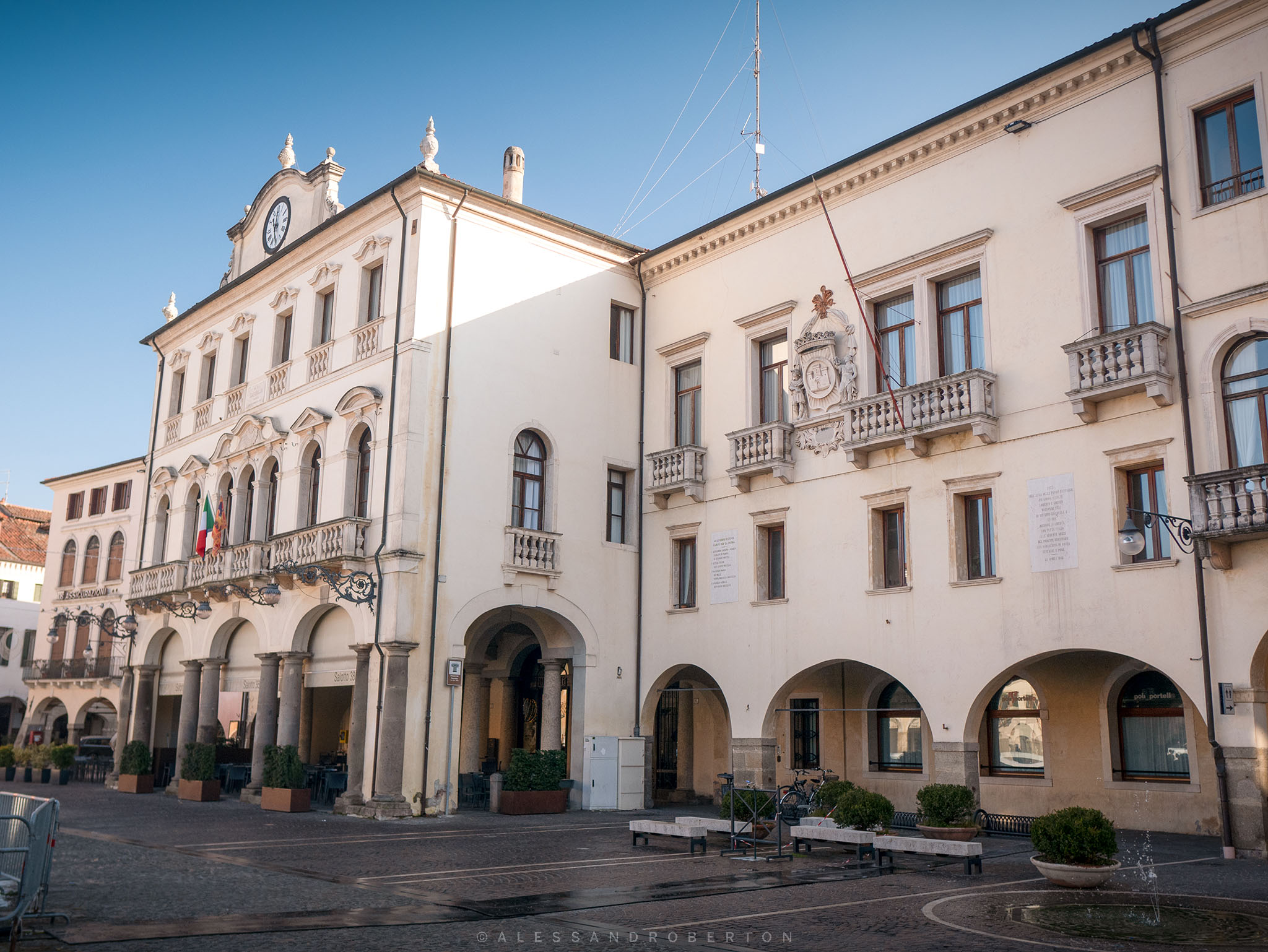 On the adjacent side of the square there is the town hall building is an elegant loggia building dating back to the 17th century, recently restored; the balcony above the porch is an eighteenth-century addition.