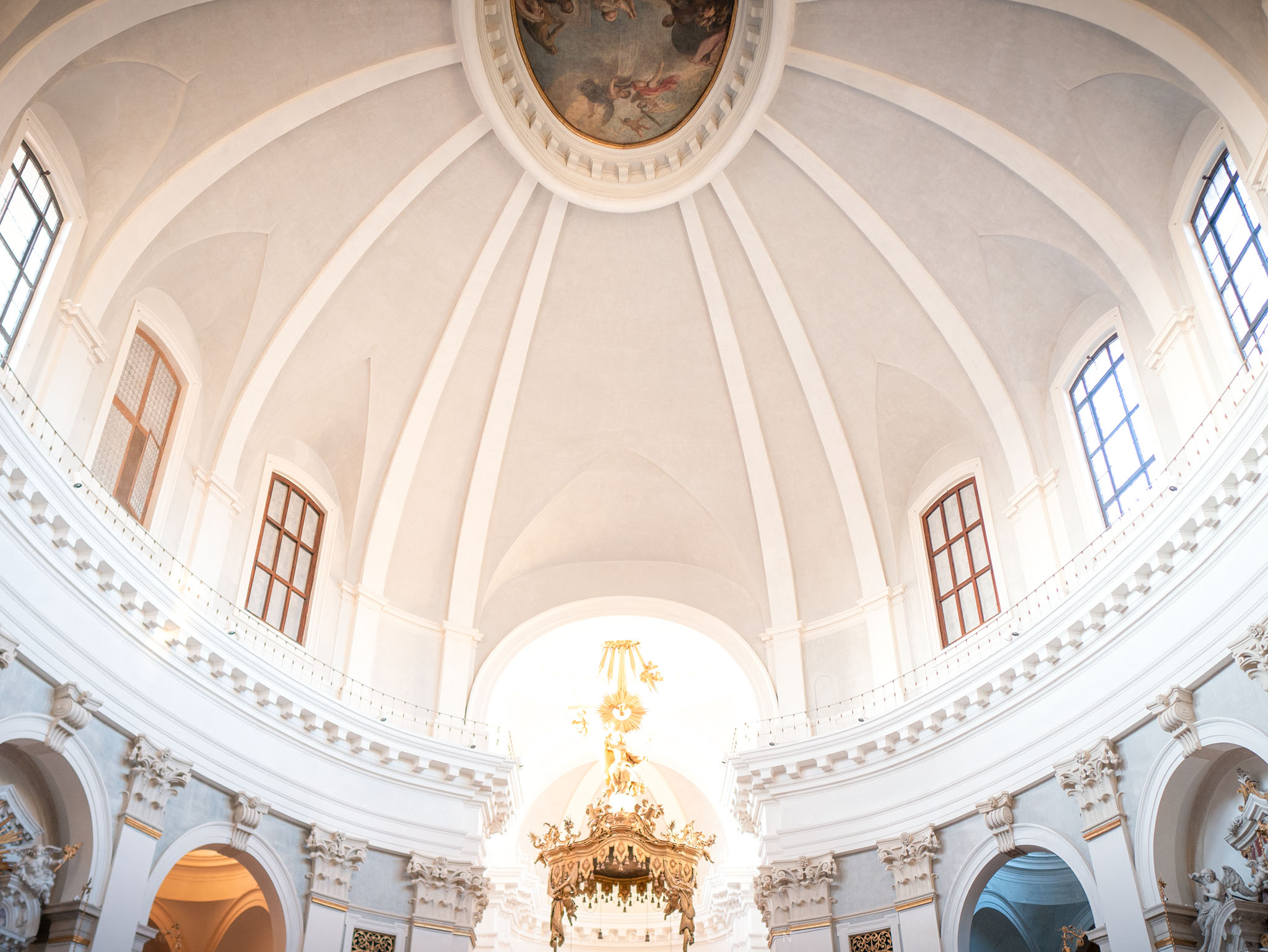 The environment is very large and harmonious with the balcony overlooking the side niches and leading the eye towards the altar.
