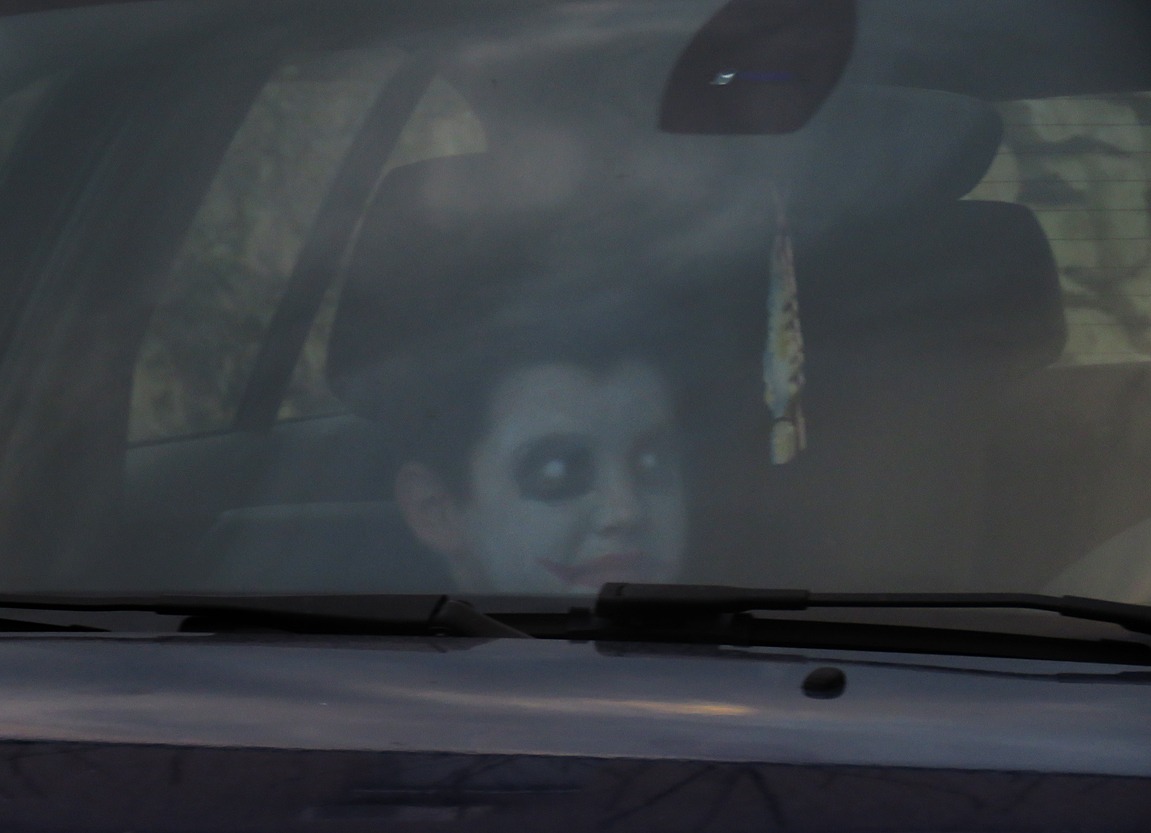 Here is the little joker ... or a Demon - kid ... in a passing car ...