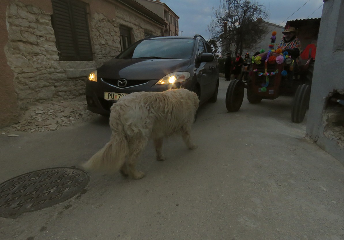 Another dog ... a big white one this time ... passed through the colorful confusion ...