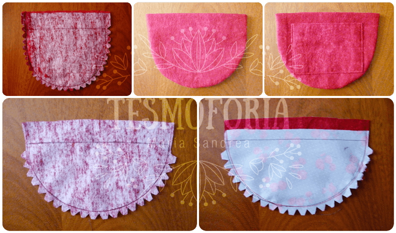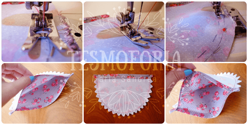 ✔ Centering the fabric inside out, we join both sides of the bag with simple seam.