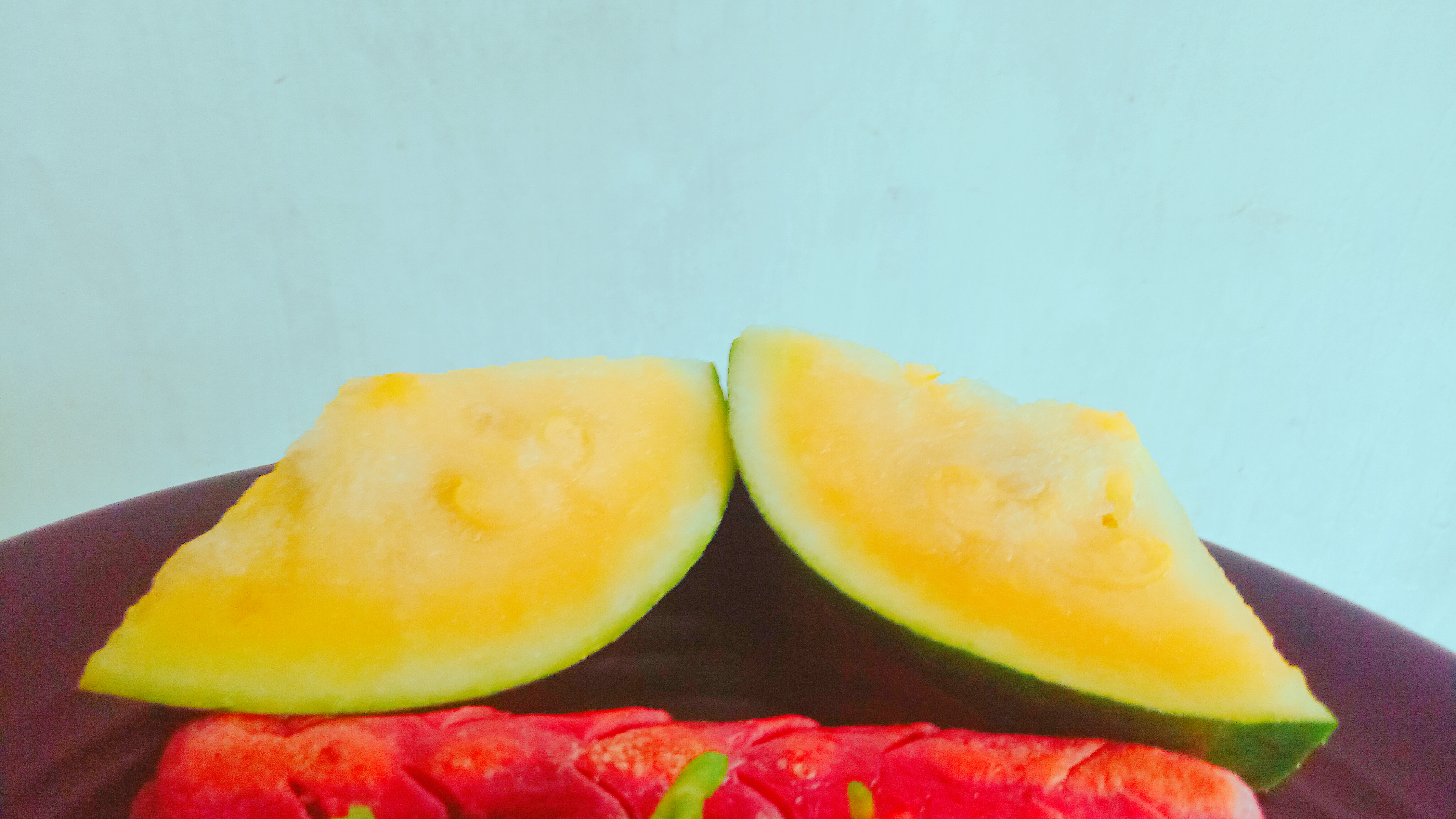 When on a serving plate, I add fresh yellow watermelon.