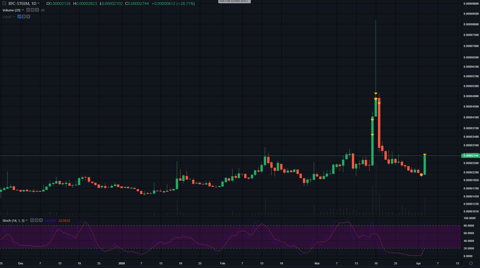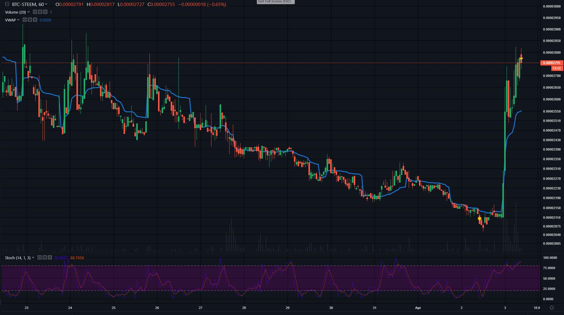 Today April 03, as I woke up, I saw that there is good rally going on for Steem/BTC pair. As people know that there is a lot of market currently for selling steem, because after the Hive hardfork there is a lot of people who is powering down and selling their steem either for Hive or BTC. This is making the price of steem softer than usual.