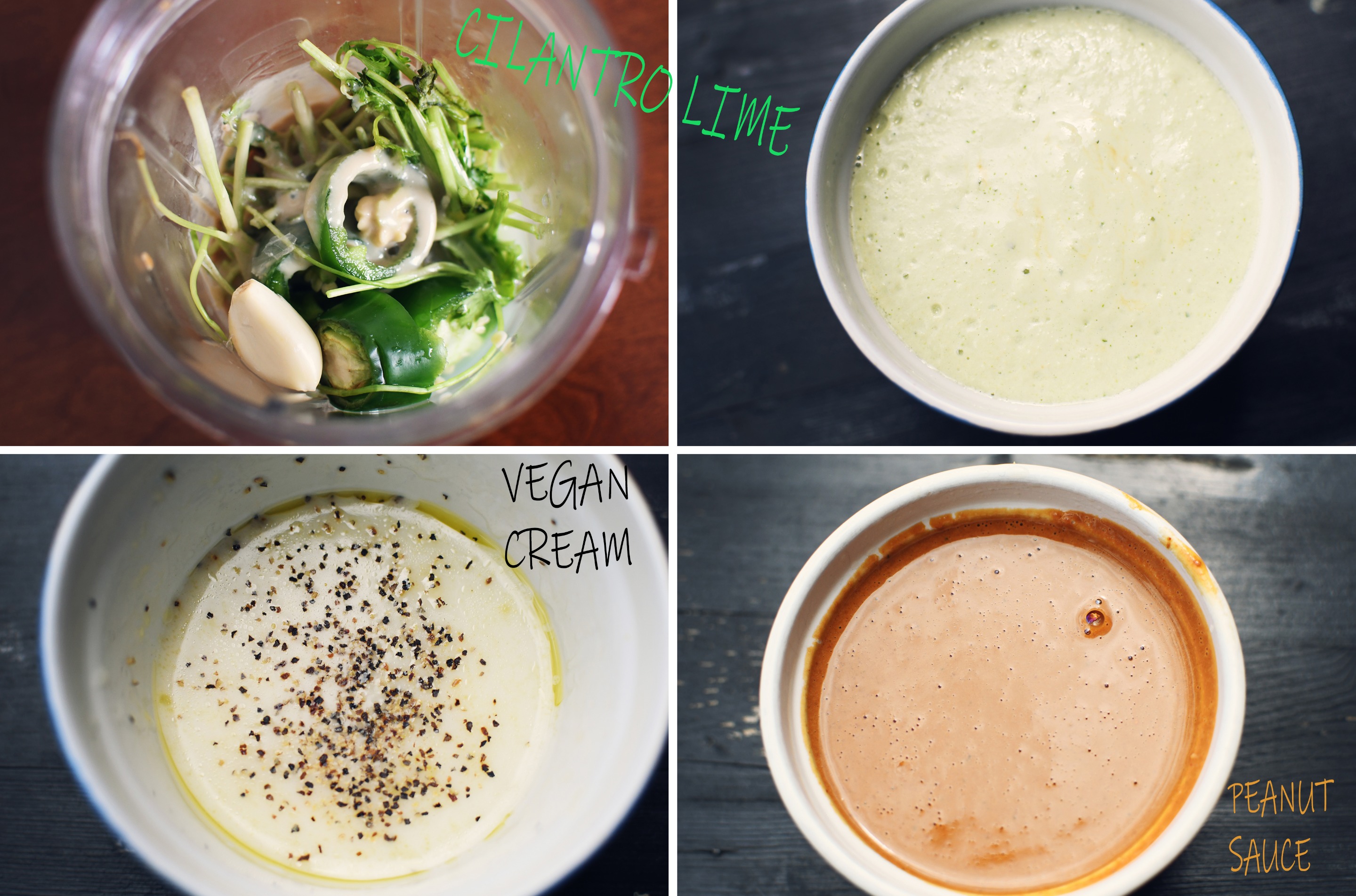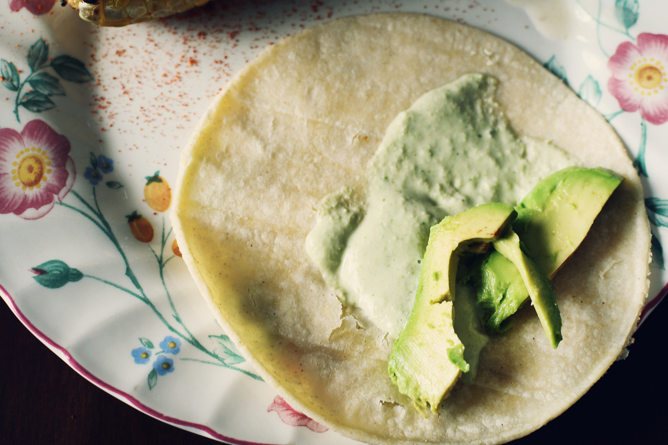 So since I'm vegan, I made a creamy butter and sour cream substitute. I also made a cilantro lime cream for the tacos and/or the corn.