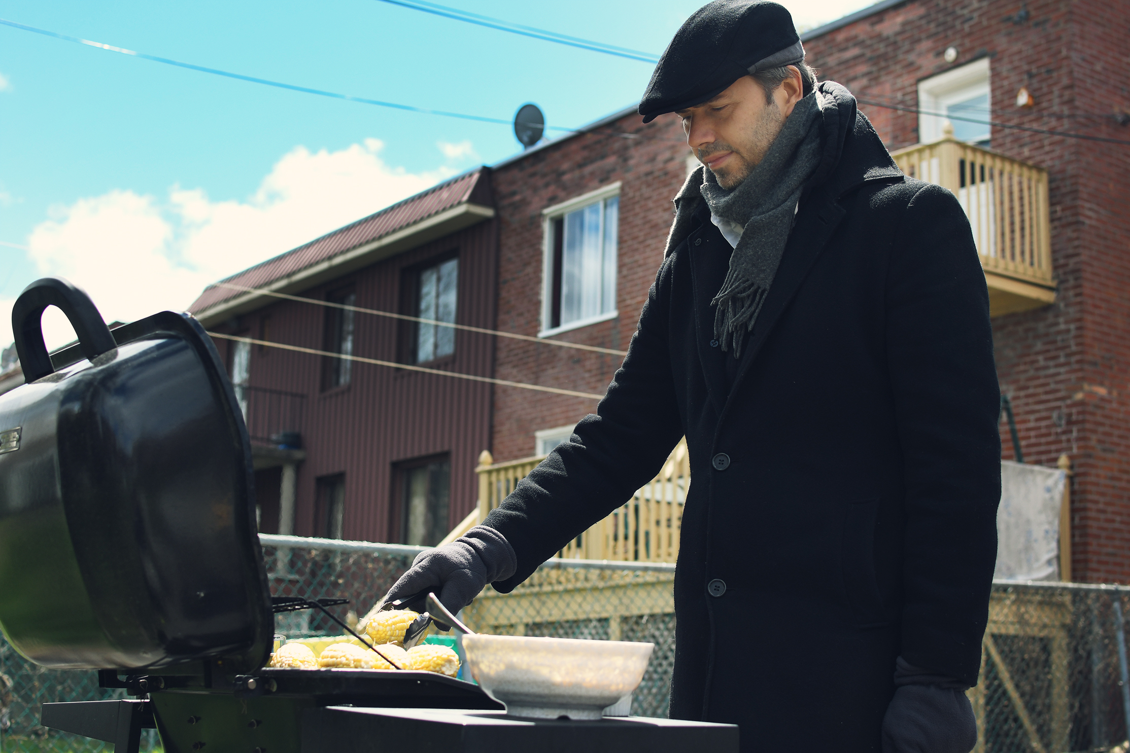 As usual Marc takes over the grill while I putter around in the yard envisioning how the garden will look when it finally warms up and starts growing.