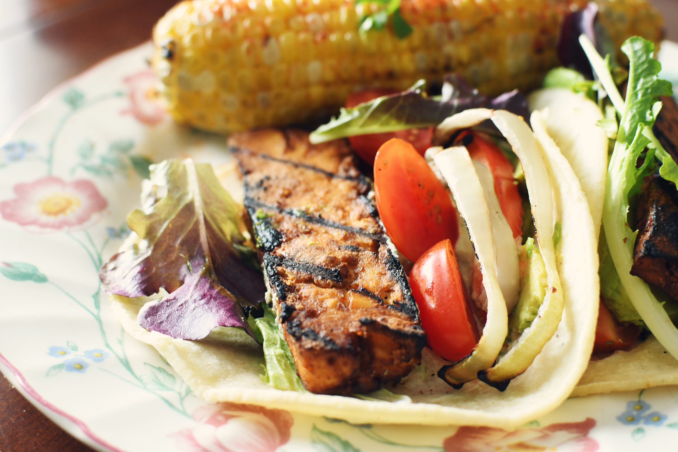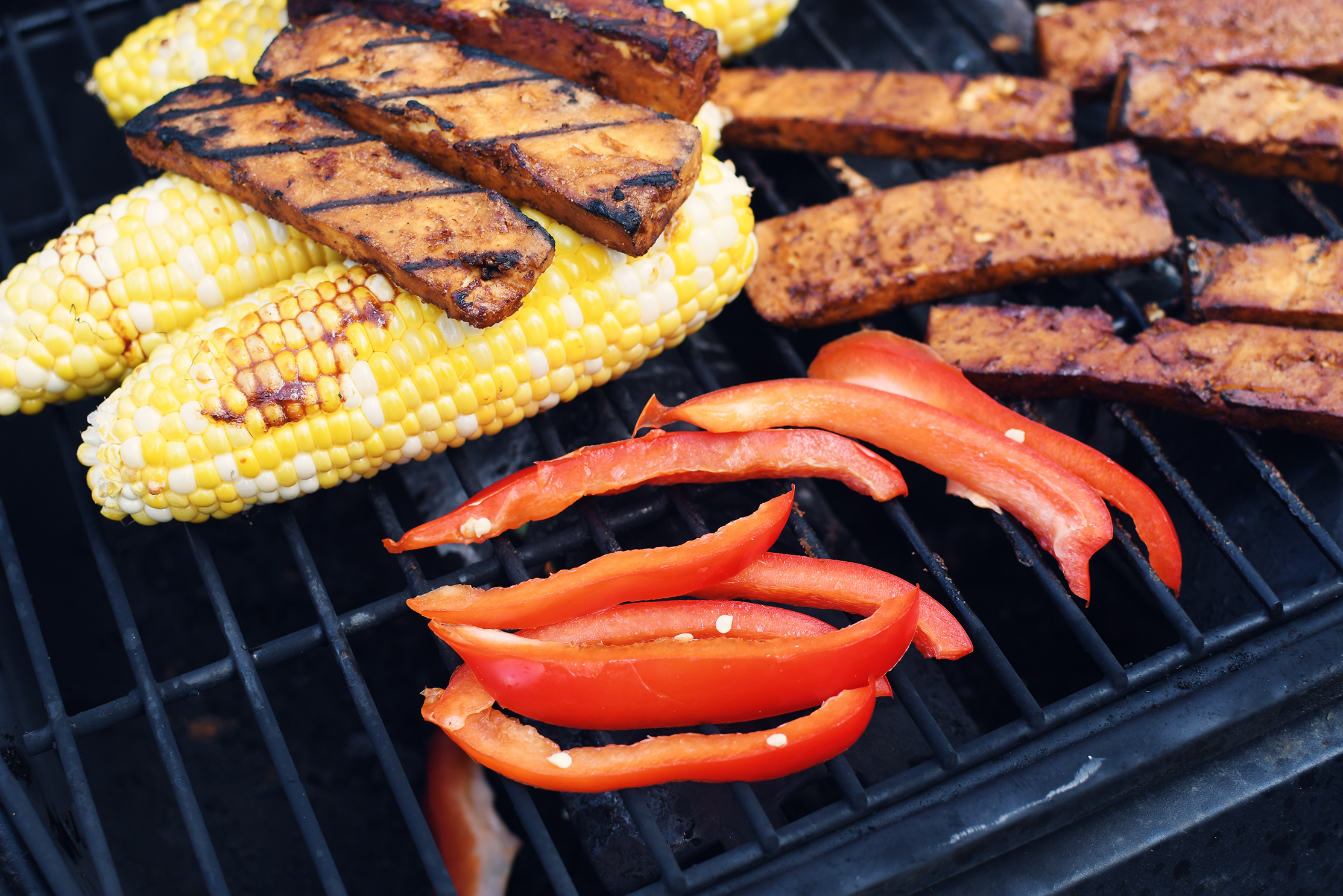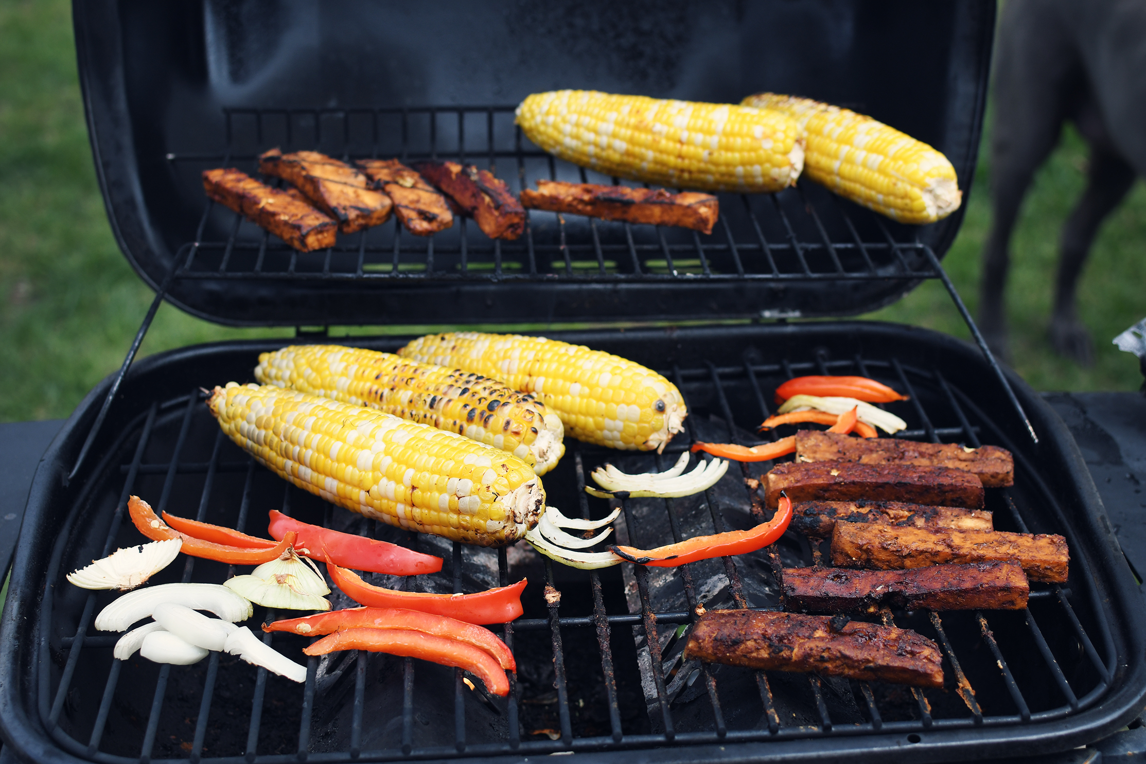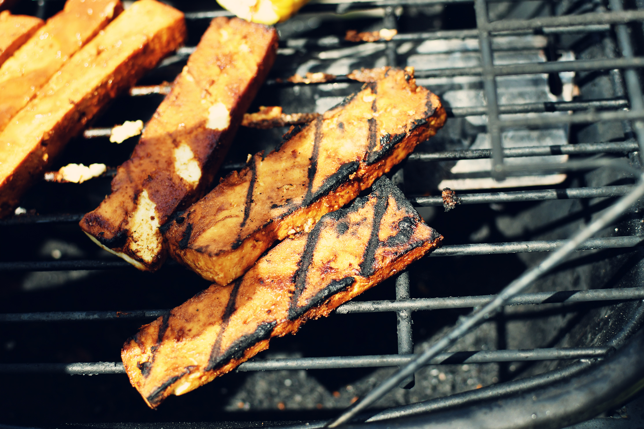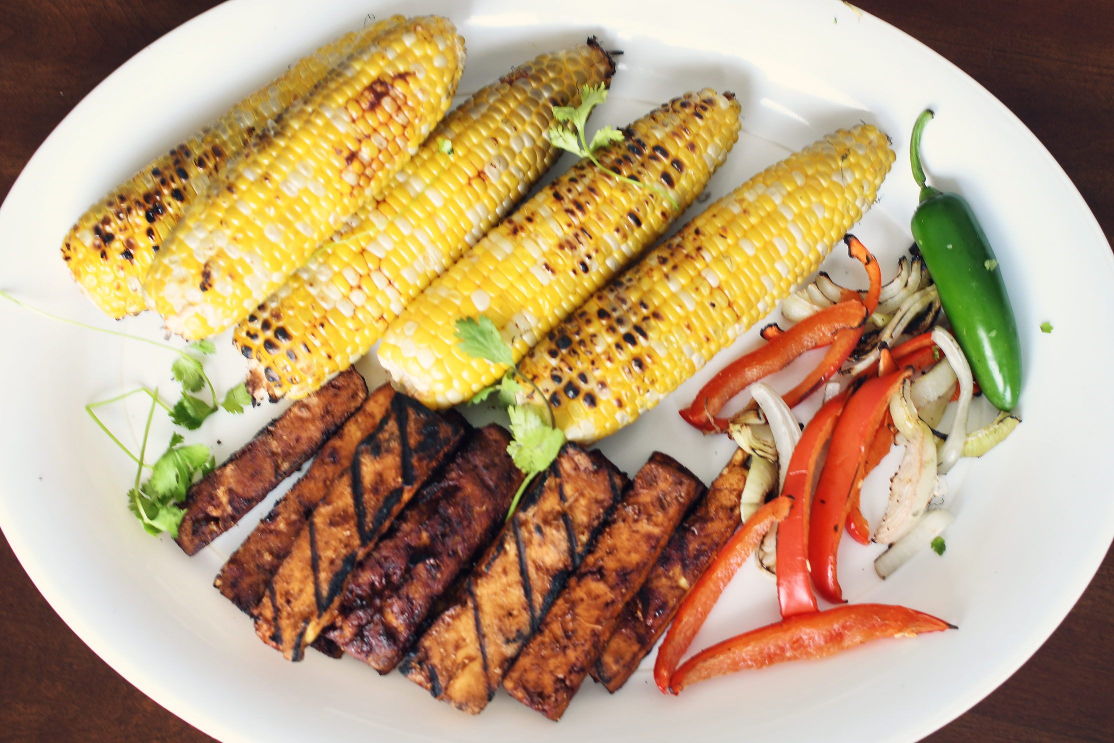 Meanwhile back on the grill, there are some golden strips of tofu and corn almost ready to take off.