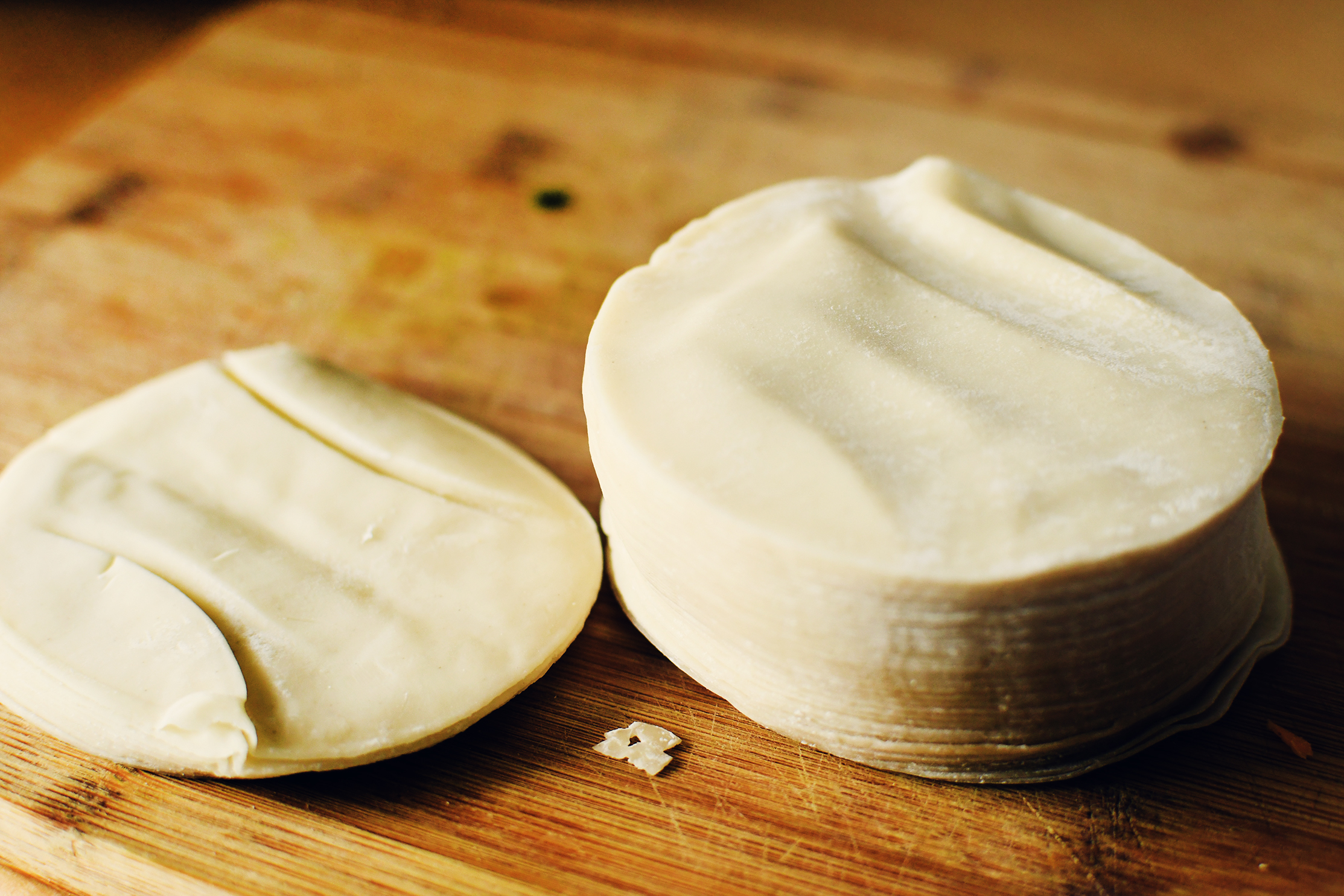 In the past I have often made my own wrappers from flour and water. It was surprising to me the first time I made it that it was easier than I thought. It's much more satisfying as well. This time I had to buy store bought ones due to the circumstances.