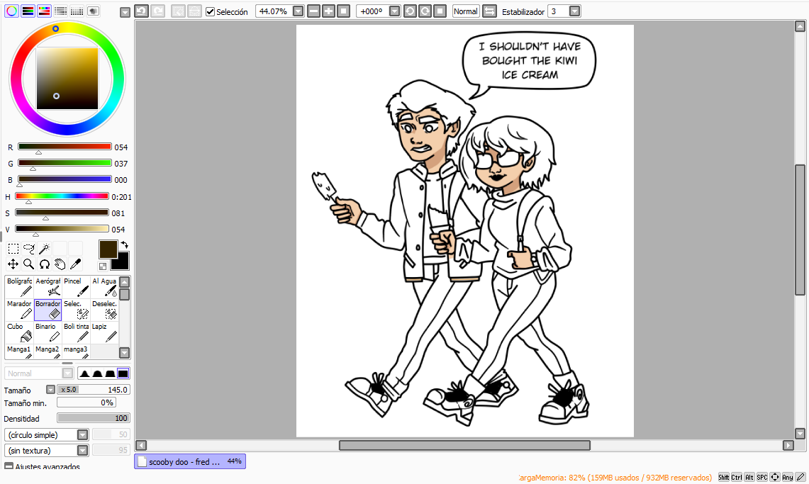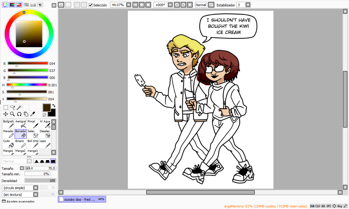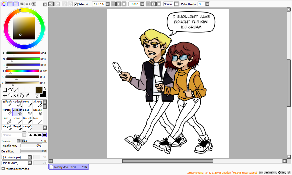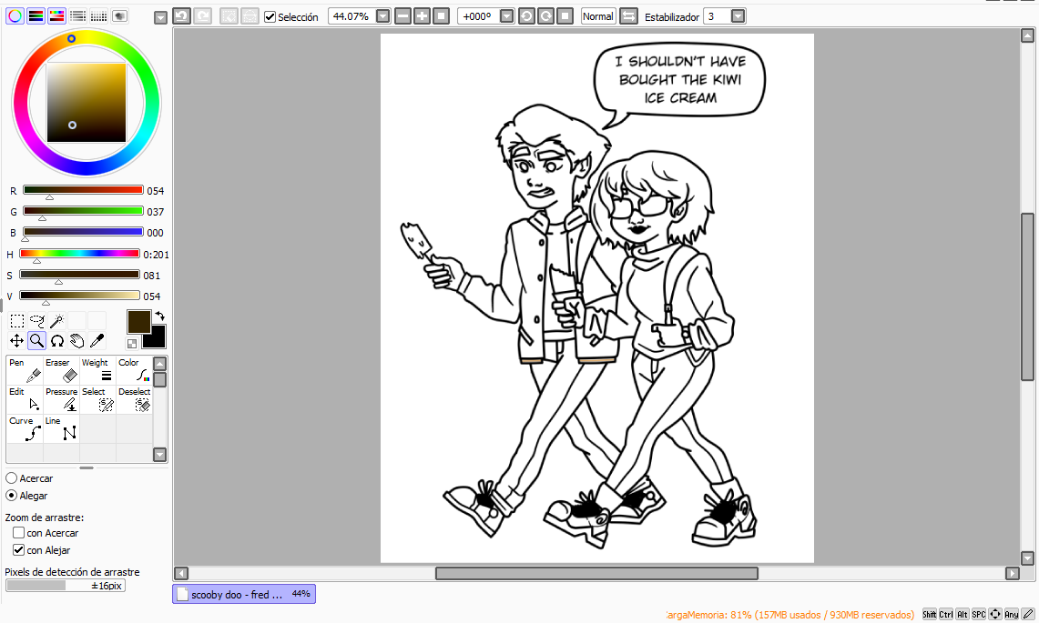 3. I cleaned the sketch with the lineart and left it ready to color, marking the speech bubble as well.