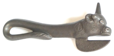 In 1855, the British inventor Robert Yeates solved the problem of how to open food cans. His new can opener had a pointed pincer to pierce the can, a sharp blade to cut the edge and a curved handle decorated with the face of a bull. It was given with the cans of meat.