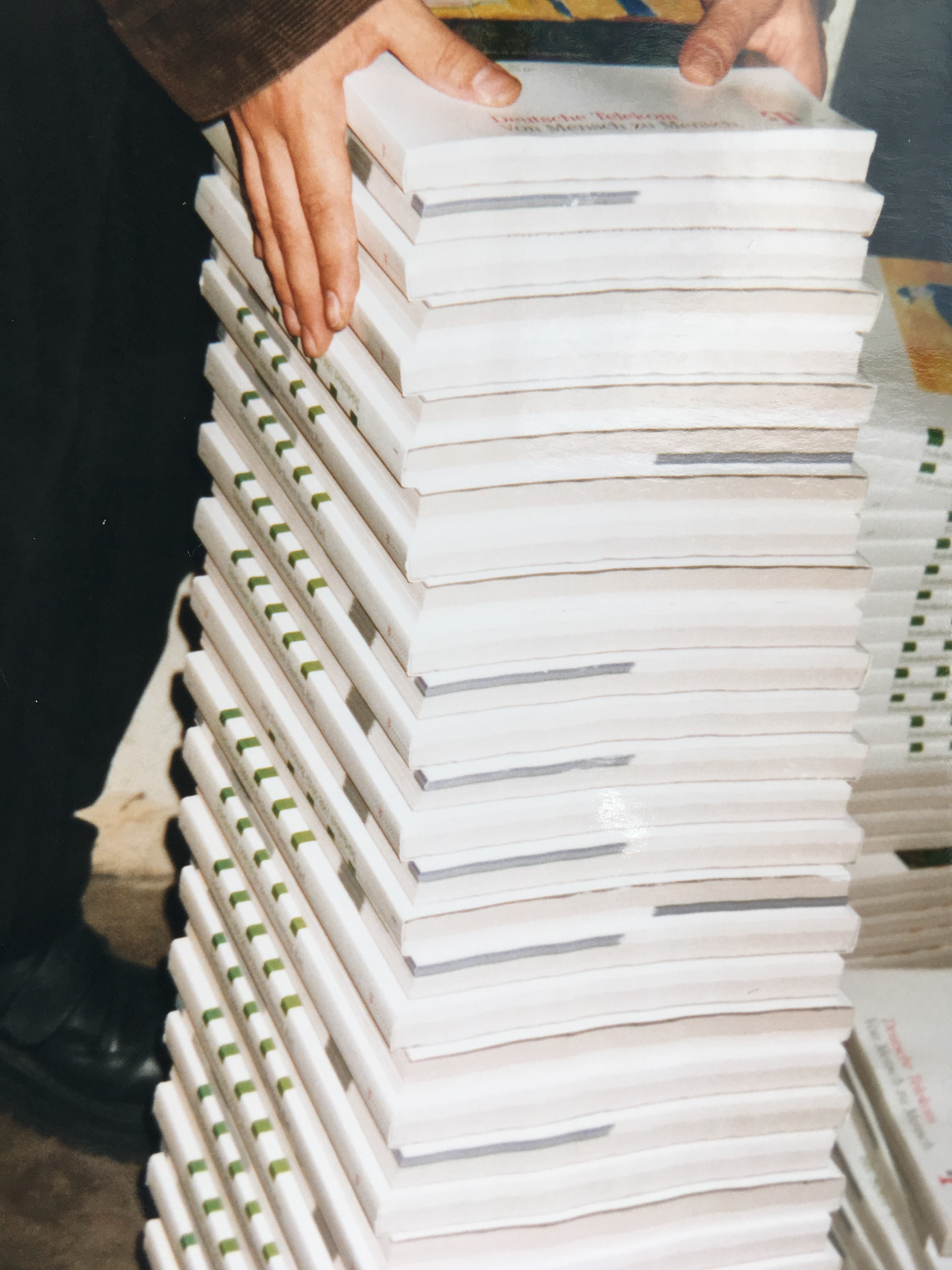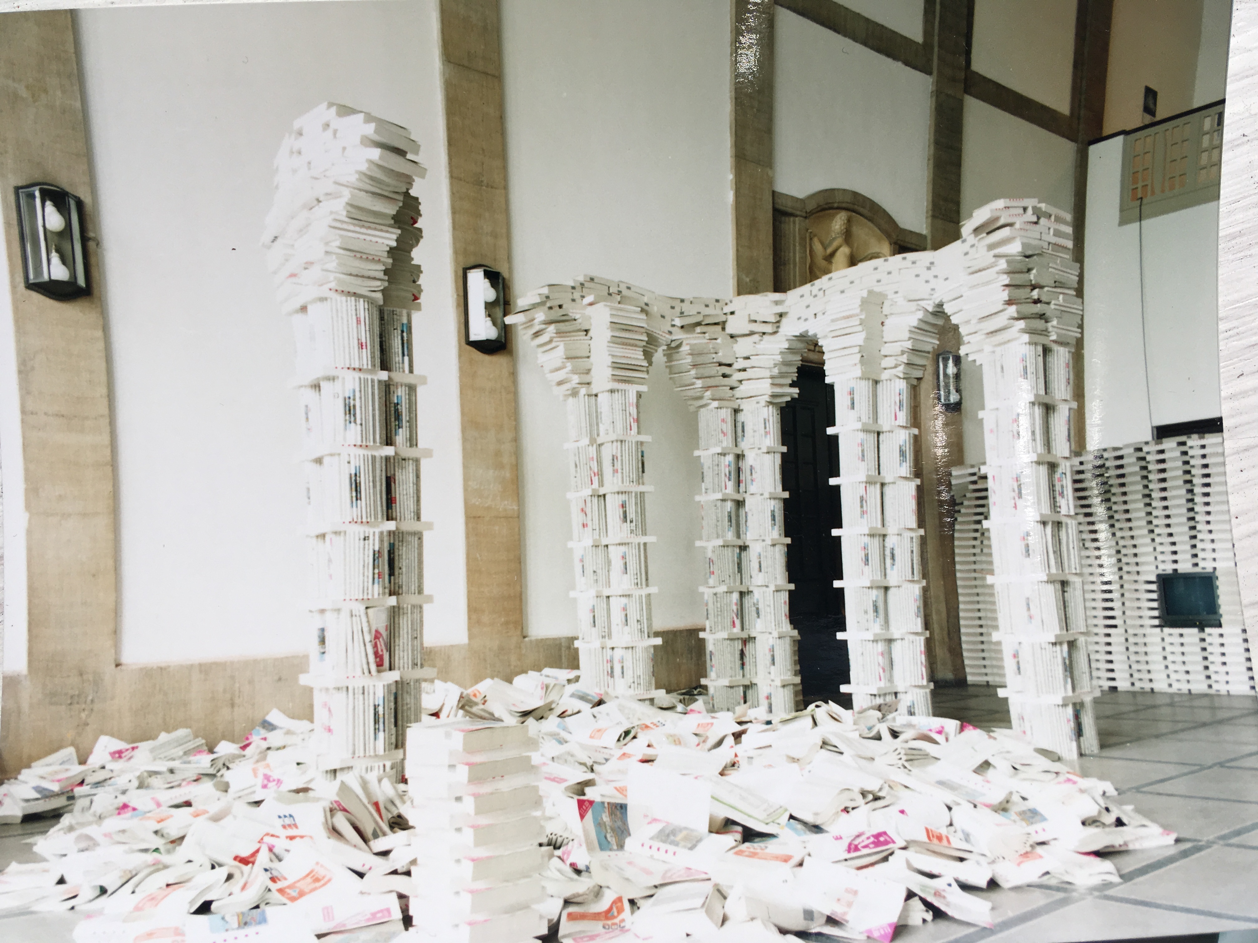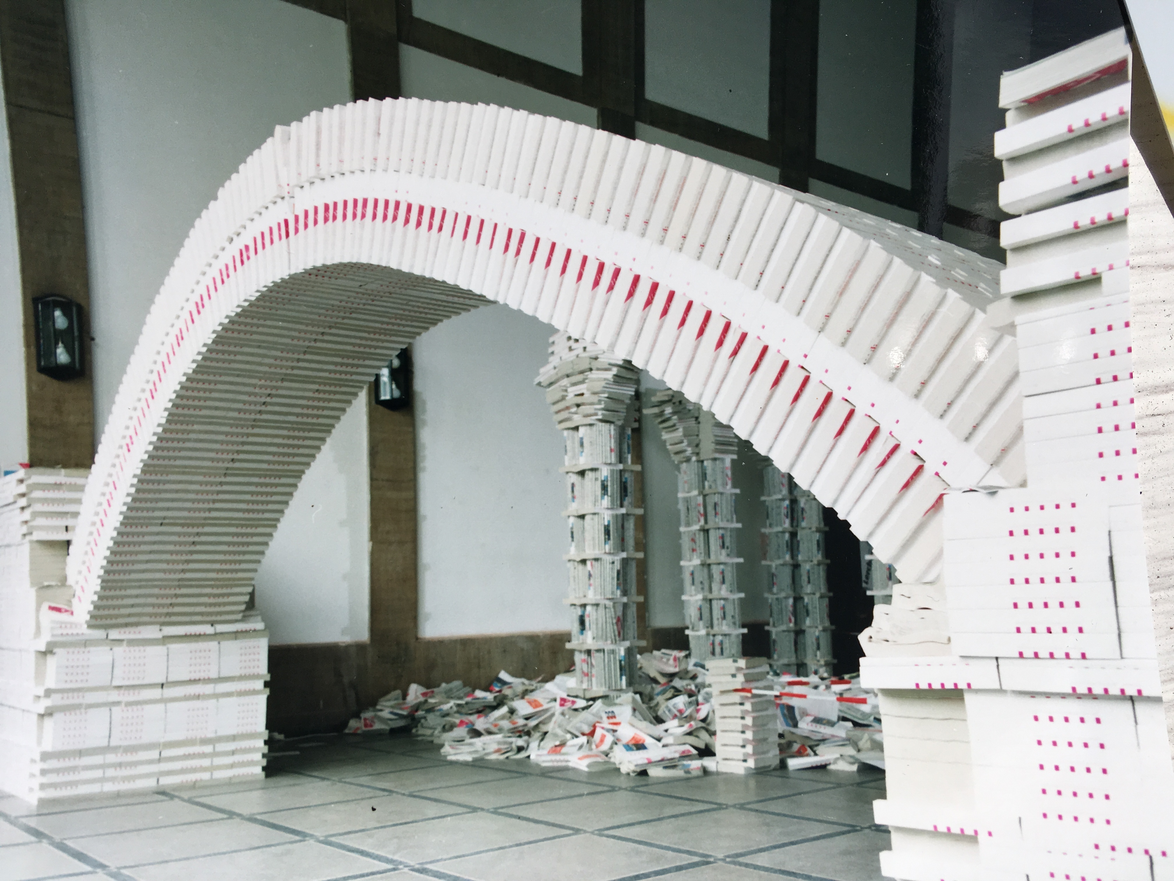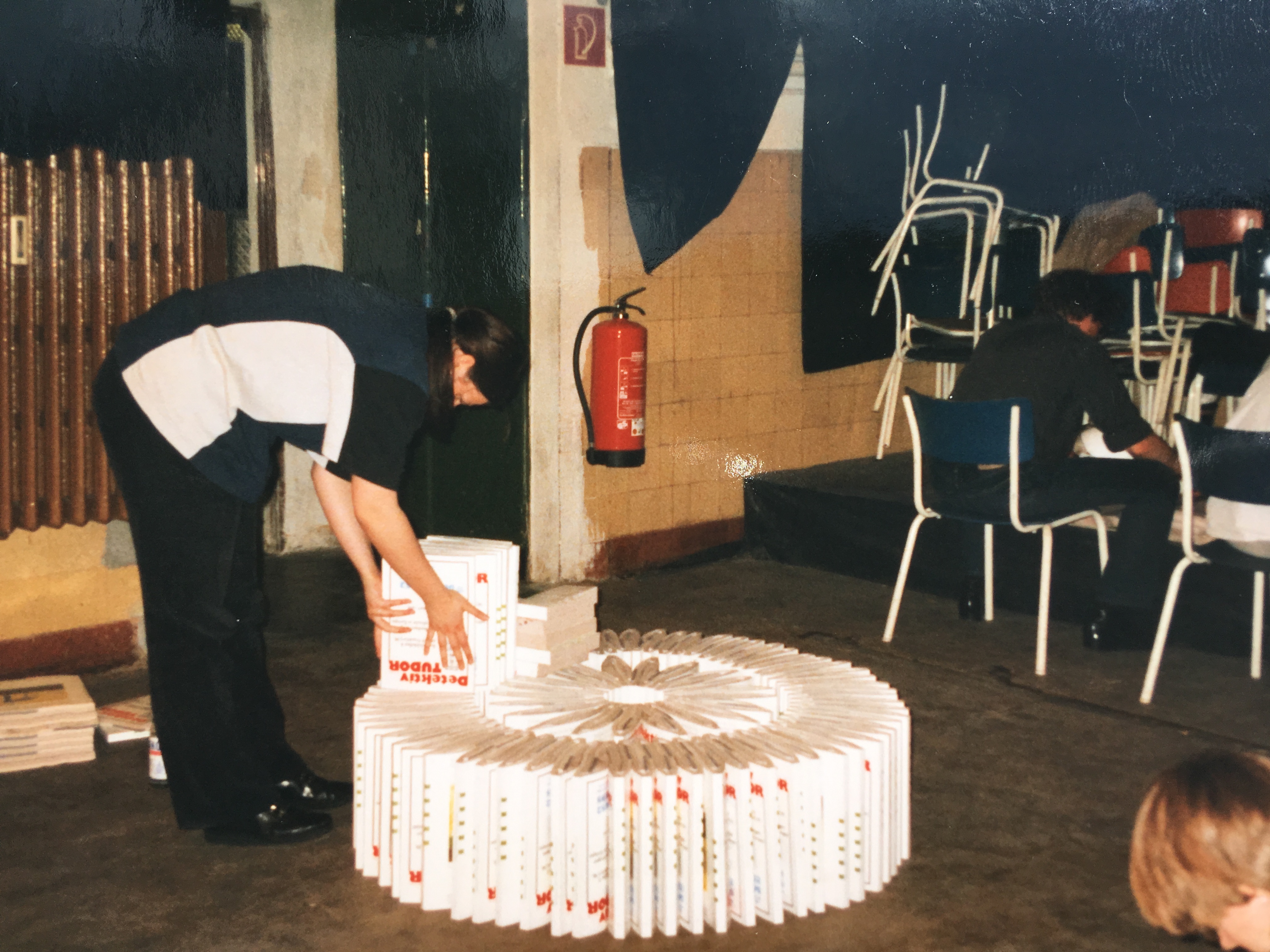 "The "Telefonbuchbau" competition was organized by the marketing group "Das Telefonbuch der Telekom und der HfbK". The aim was to design and erect supporting structures from telephone directories alone.
