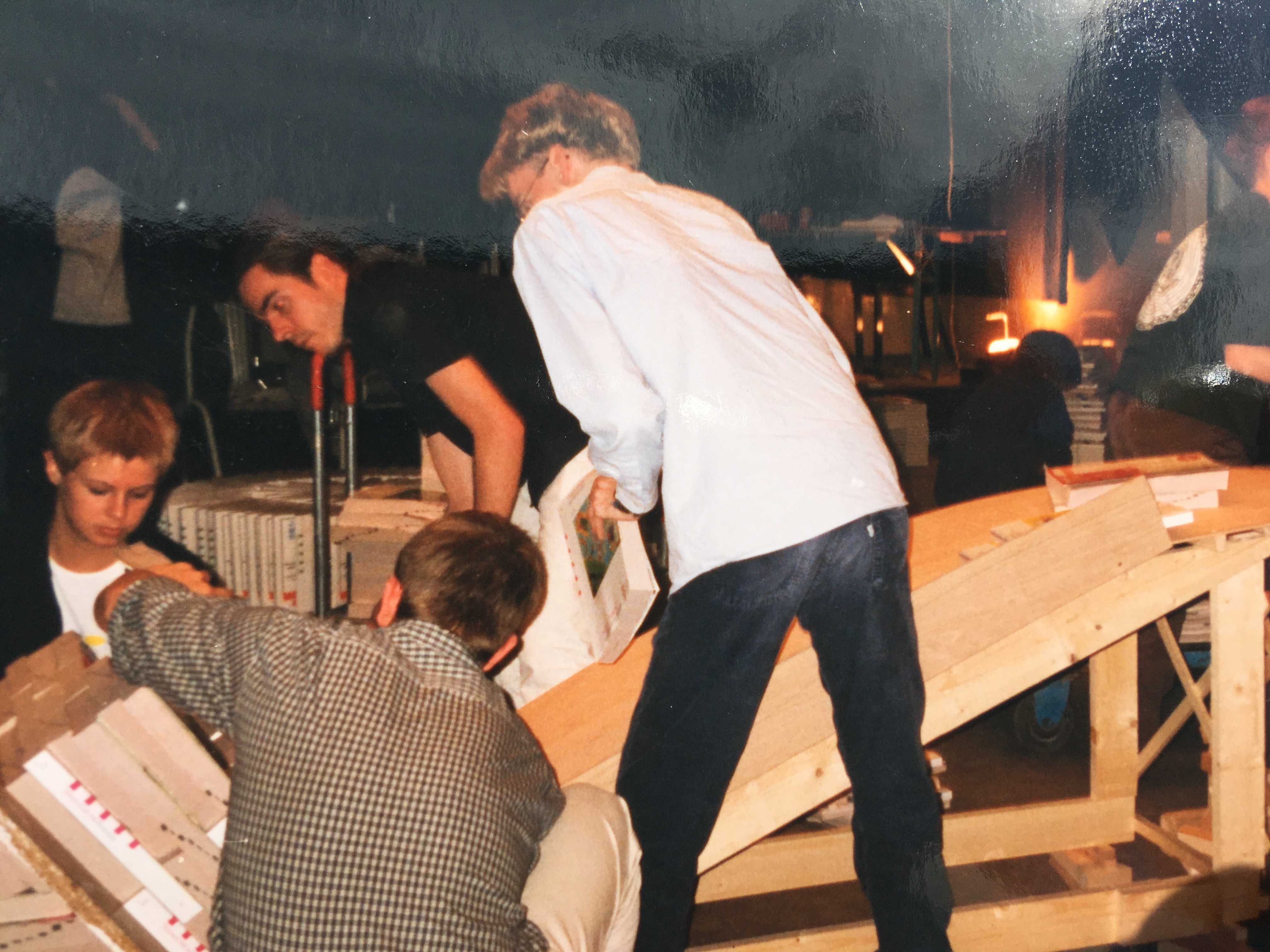 The amount of material helped, of course, because experiments and mistakes could take place. I saw how constructions were created before my eyes, the students had formed into smaller groups and had each devised a project. I was able to watch some of them building a wooden formwork for an arched bridge and then starting to stack the phone books together and develop a plug technique that should give strength. The most exciting moment was when the wooden boarding was pulled out and we all held our breath to see if the bridge would hold by itself. During the first attempts everything collapsed!
