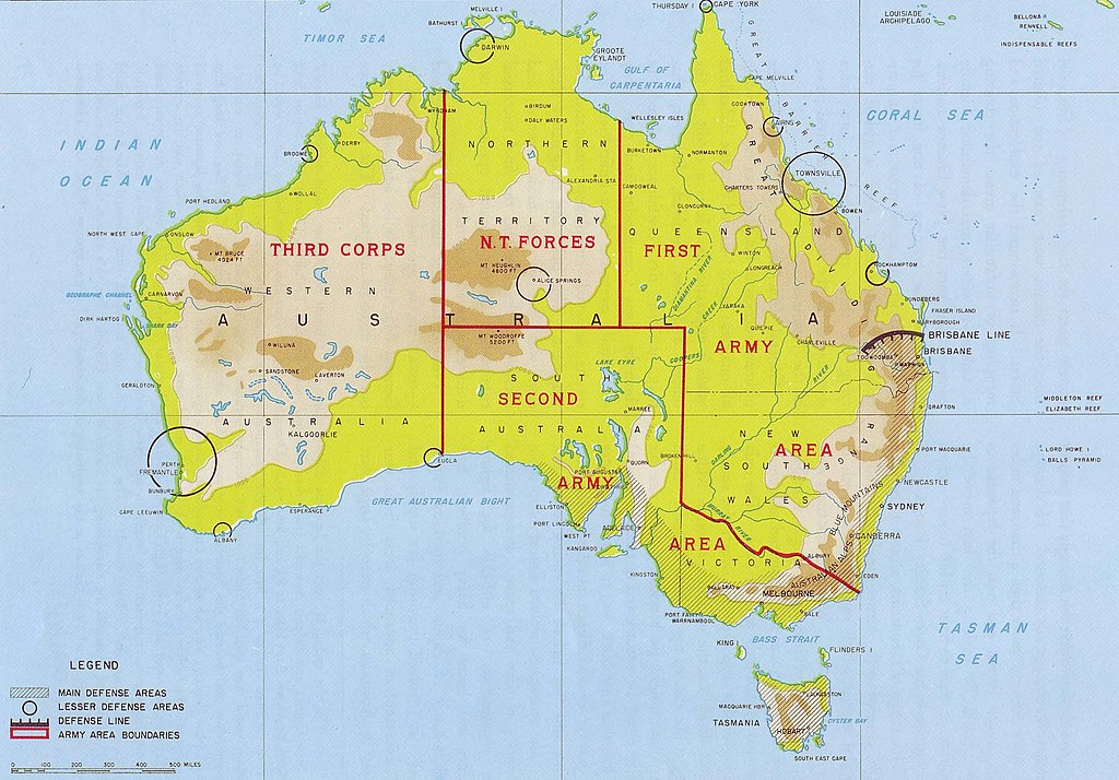 You can see the main defence area marked from Adelaide around to Brisbane, including Tasmania. The rest of Australia was to be forsaken. src