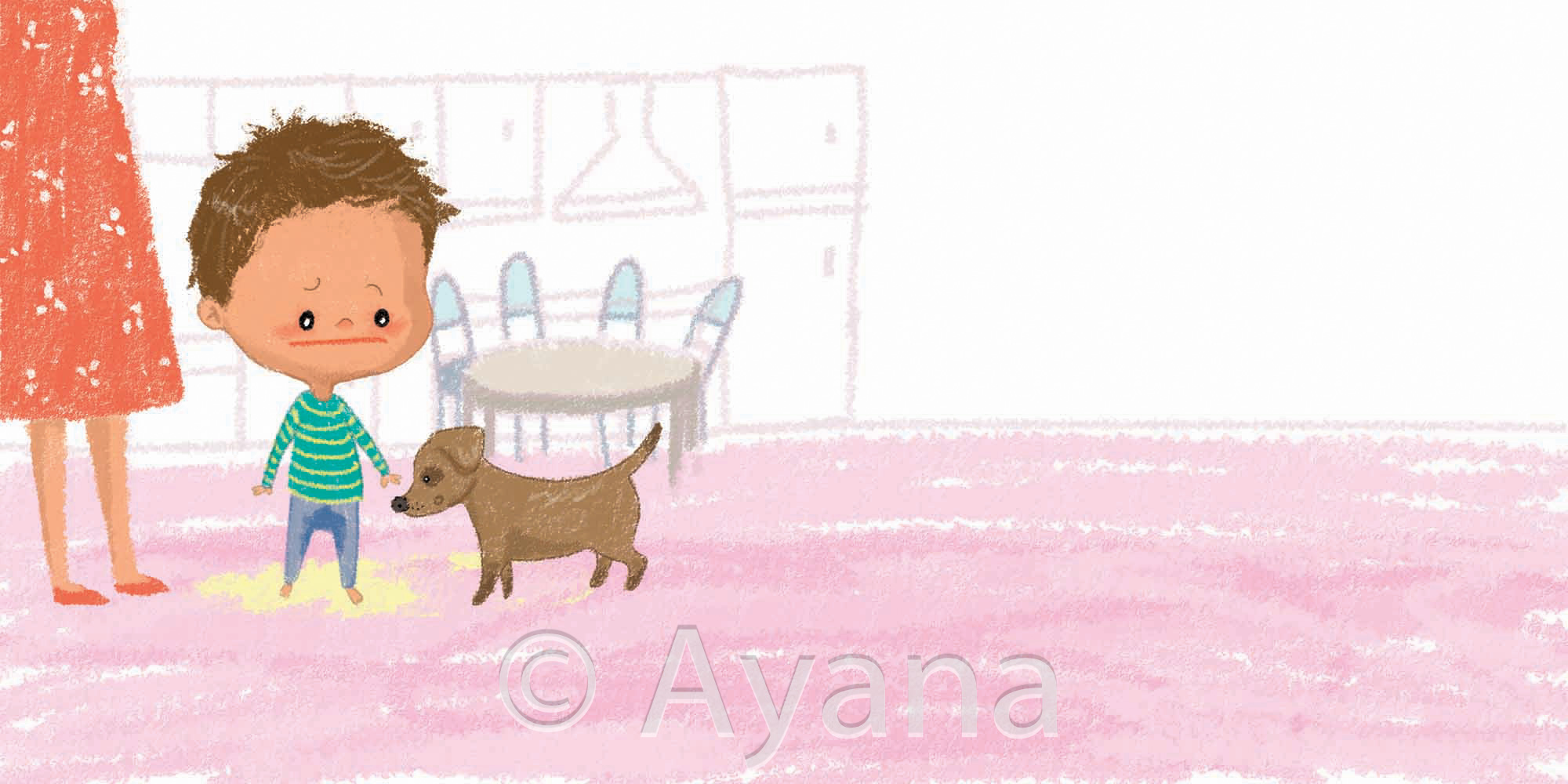 In a next scene Paul has a little accident... He wet his pants! Of course this is very uncomfortable and it would have been better for him to use the potty! Maybe only their dog Spot doesn't think this to be unusual... after all, this ground here seems perfectly okay for peeing (but a tree would have been better no doubt).