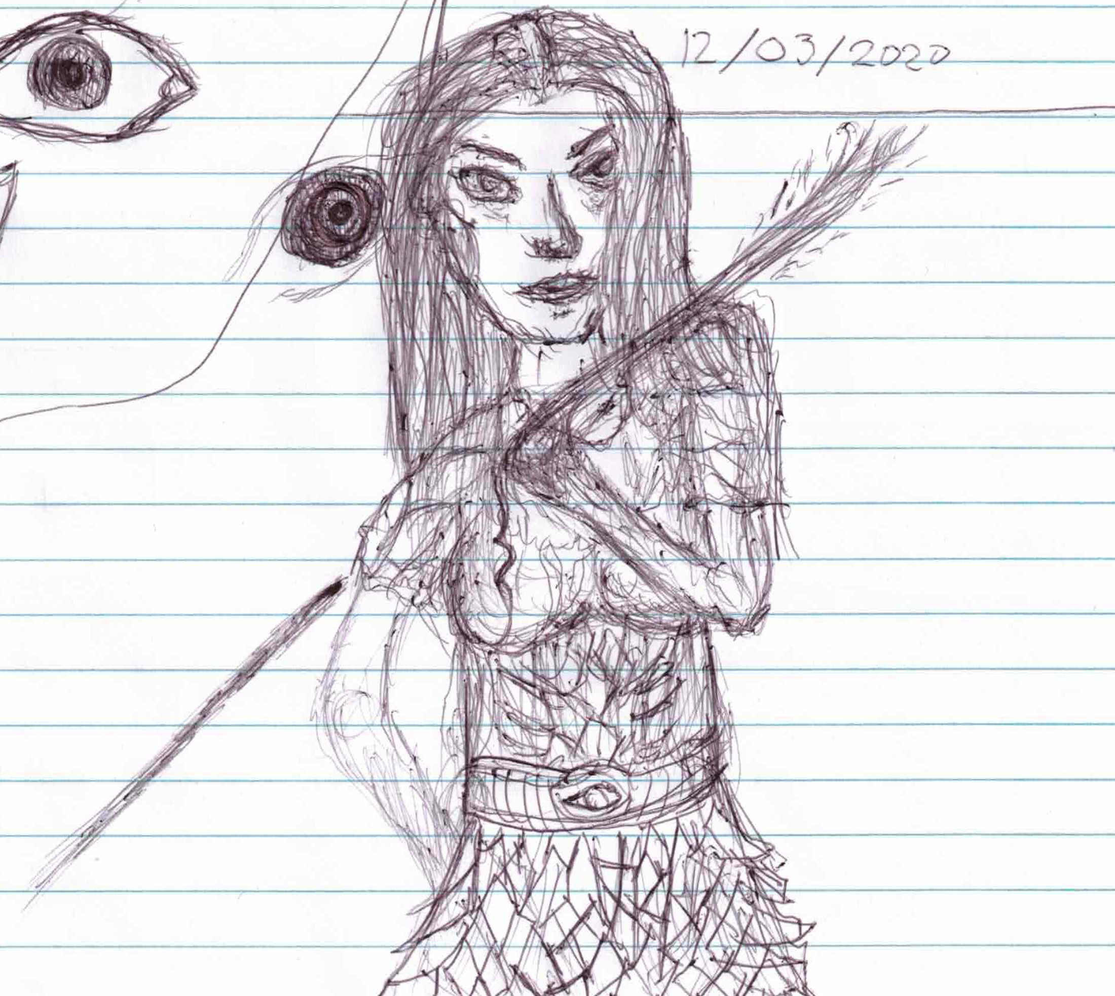 Original drawing</h1?I've attempted to capture the moment Joan was hit by an arrow. Ignore the eyes on the other side of the image, I have a habit of drawing eyes...