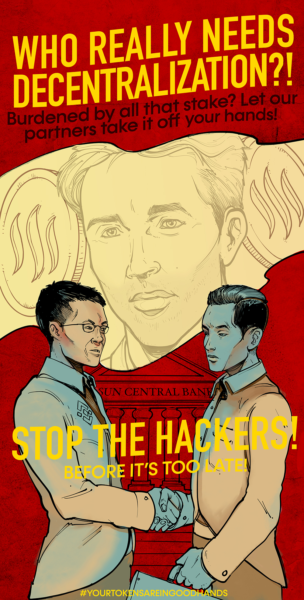 Speaking of holding the players accountable, I’ve had this idea for a piece of artwork, and that’s what I’m sharing today. Fitting, actually, that it’s on my first SteemPeak publication. I had an idea for a WWII propaganda ad. Now, since finishing this, I’ve heard that CZ has begun a power down of 16,000 STEEM, which is far from the 1.6M STEEM locked up to attempt the coup. This ad was an attempt to hold the feet of those responsible to the fire and urge them to make the right decision. I hope Binance does just that, for the entire amount that’ve powered up.
