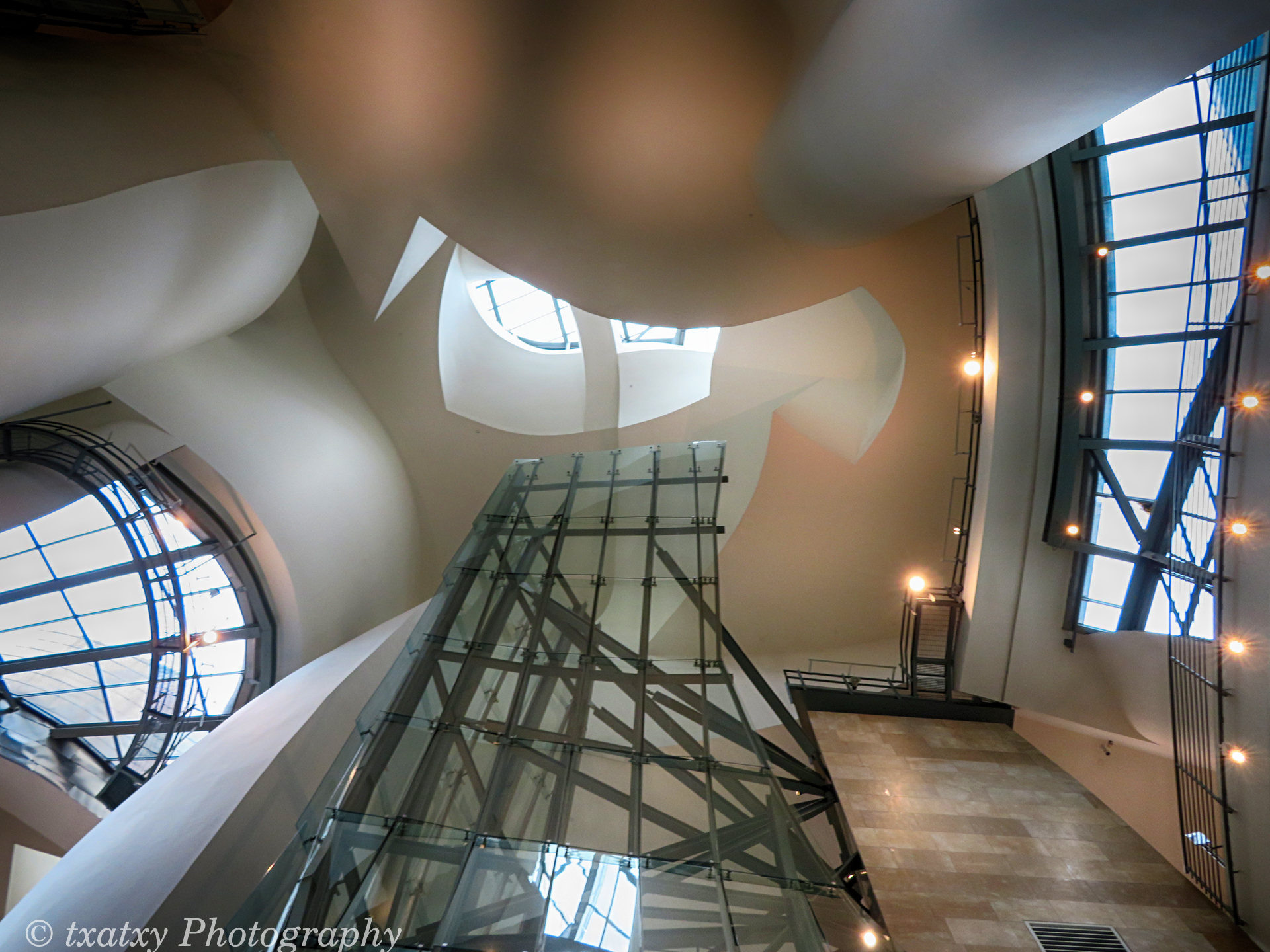 @txatxy takes us to Guggenheim Museum is Bilbao. Its a stunning piece of architecture from the outside, difficult to explain what it looks like but very inviting. The interior design has curves shaped like a woman's body according @txatxy, and you can see probably see what she means through her lenses.