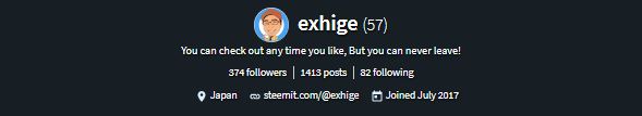 @exhige is another Japanese Steemian who posts every day. He has been observing and figuring out how Steemit works for his life. He shares his thoughts and findings on how to be active on Steemit regulary with simple and easy steps. Curated by Japanese OCD team @djynn & @fukako.