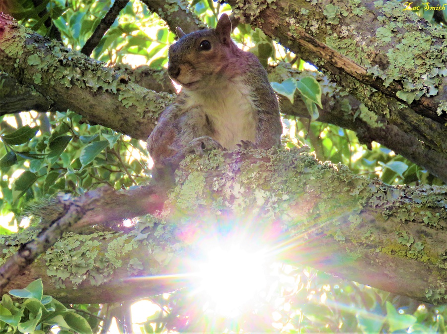 This is our wild Squirry resting in the morning sun and yes, she does have teeth!