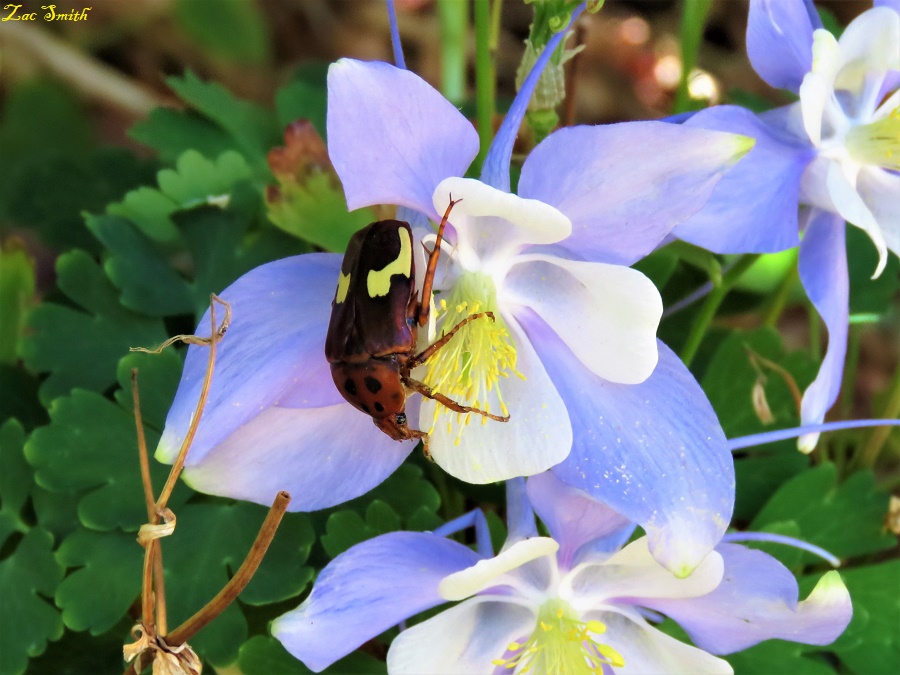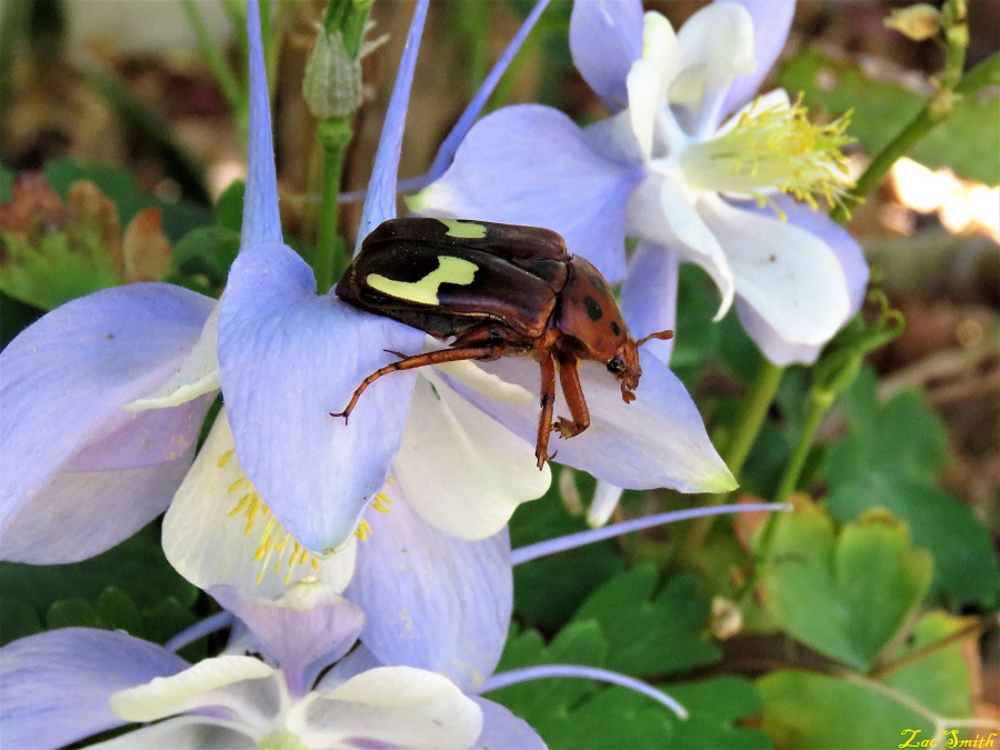 I have not planted this blue plant gift out yet, but found this "Fruit Chafer" stripping its pollens!