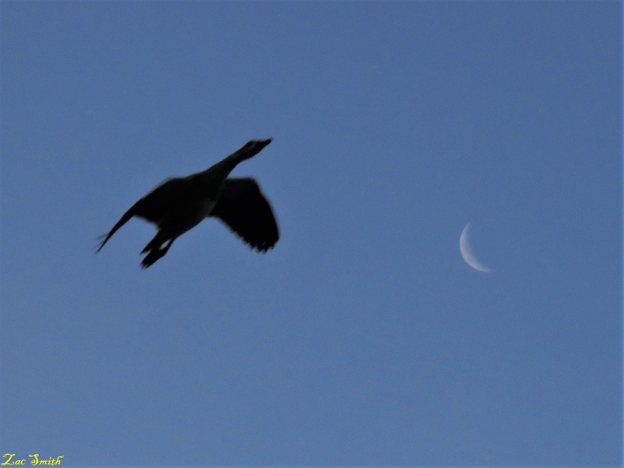 I saw the late goose coming over, took a quick shot and saw on my PC that I also got the moon in the background!